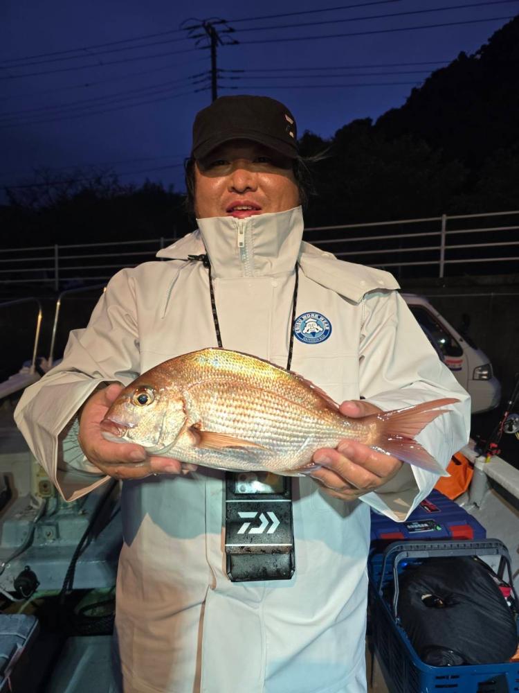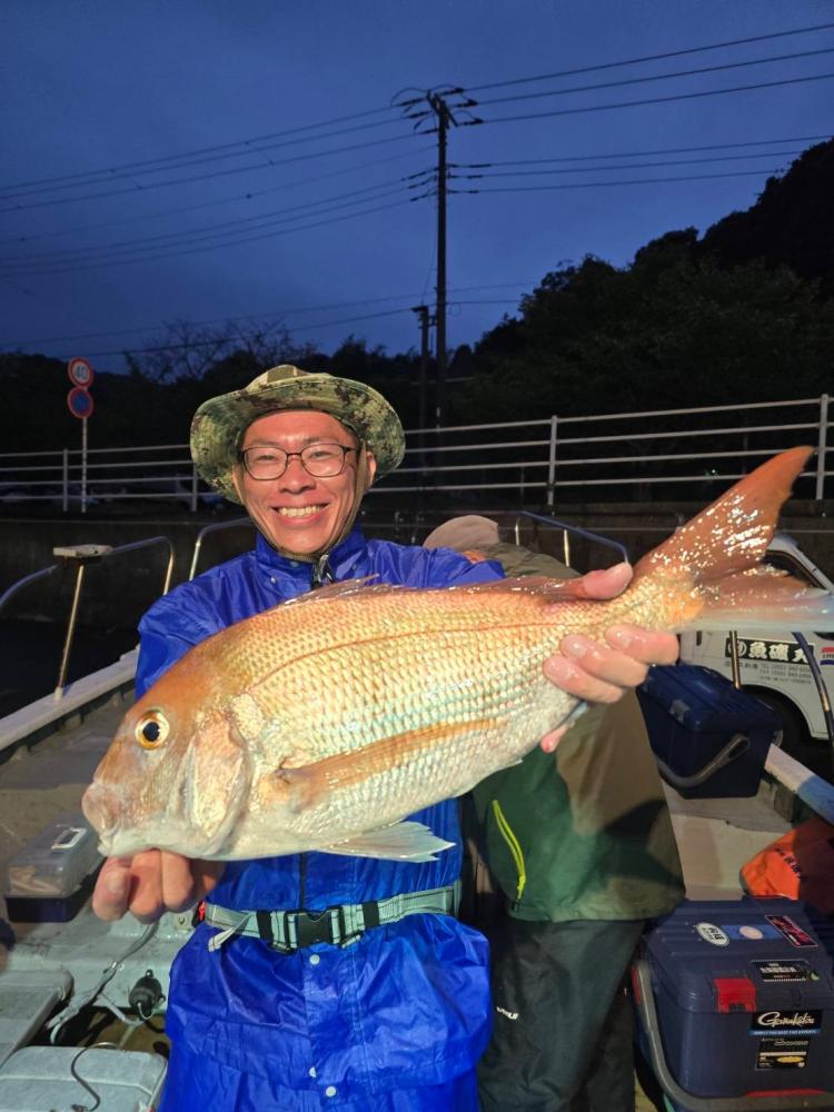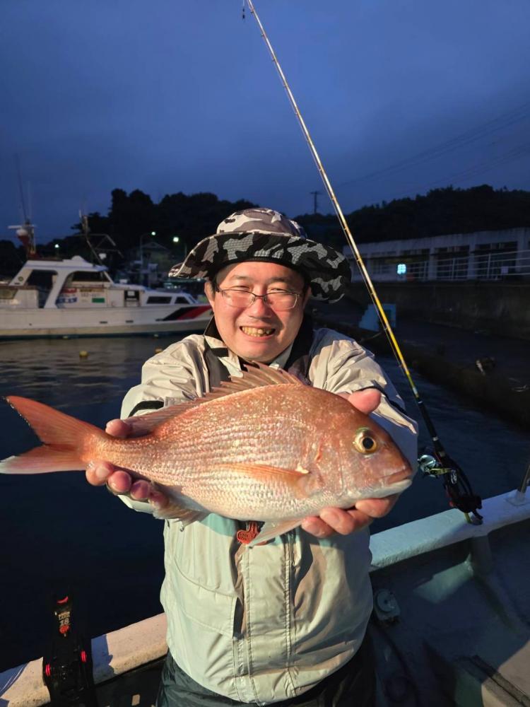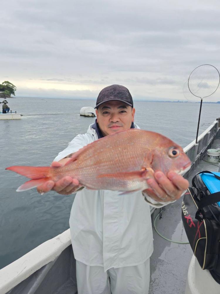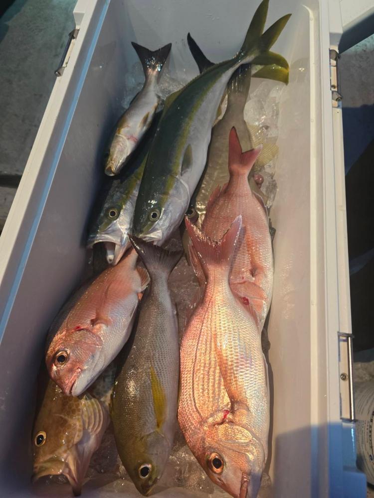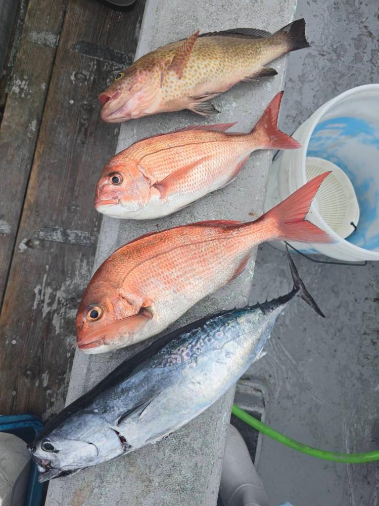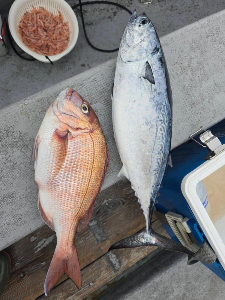 前半潮速く苦戦、ポイント移動で潮緩み、マダイとイサキがポツポツ当たりました。