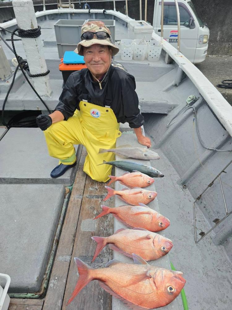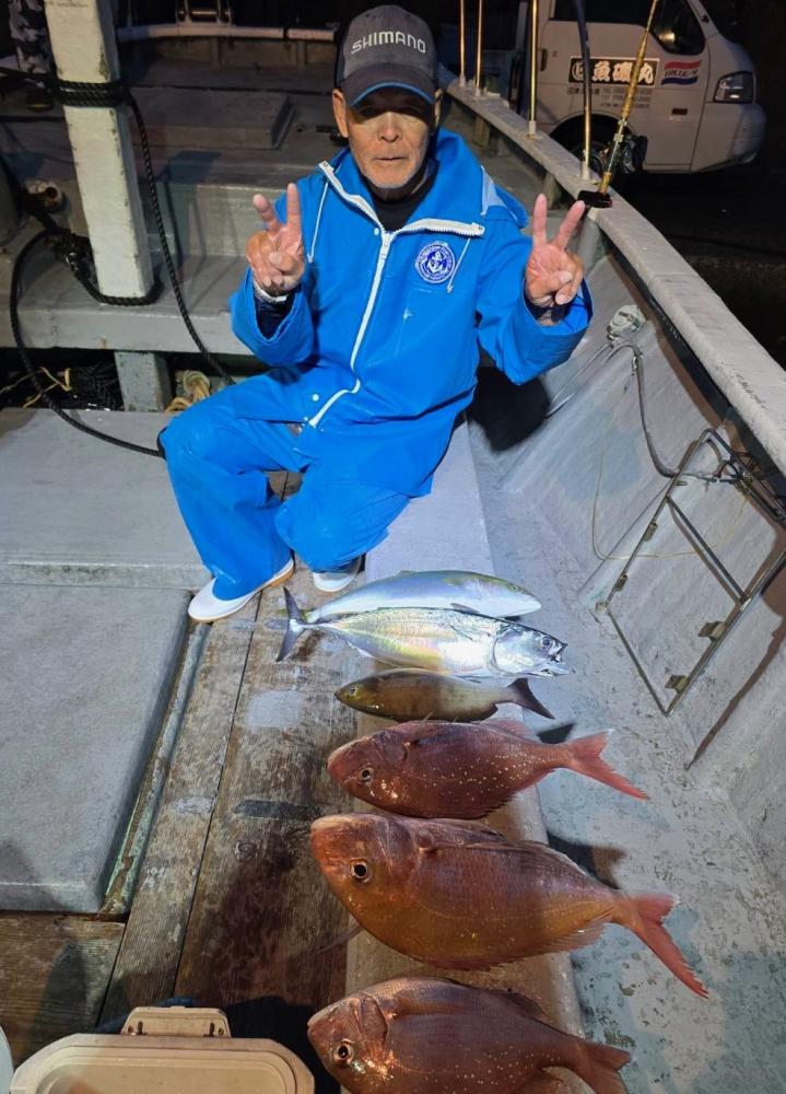 日程 | 午前マダイ五目 | 午前泳がせ釣り根魚五目等 | 午後マダイ五目 | 夜釣りアジ五目 | 遠 征石花海等 |