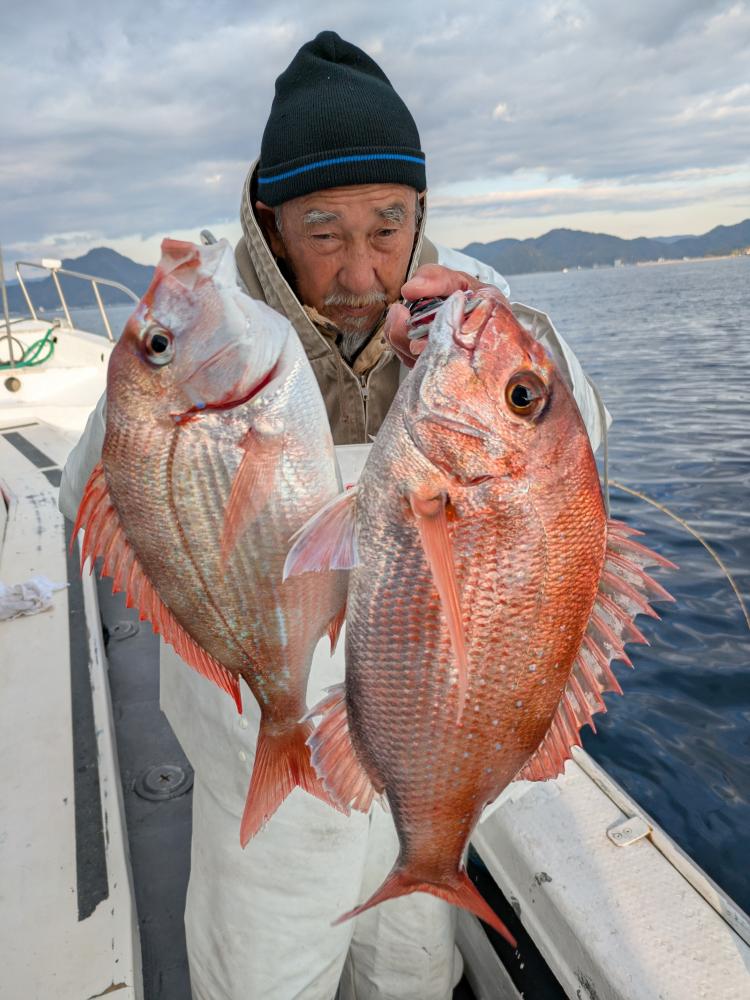 | 日程 | 午前マダイ五目 | 午前泳がせ釣り他 | 午後マダイ五目 | 夜釣りヤリイカ&マルイカ |