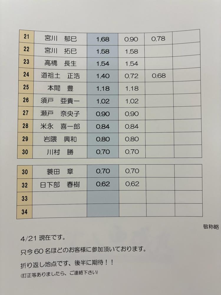 | 4月30日(木) | ●満 席 | × | 空きあり | - |