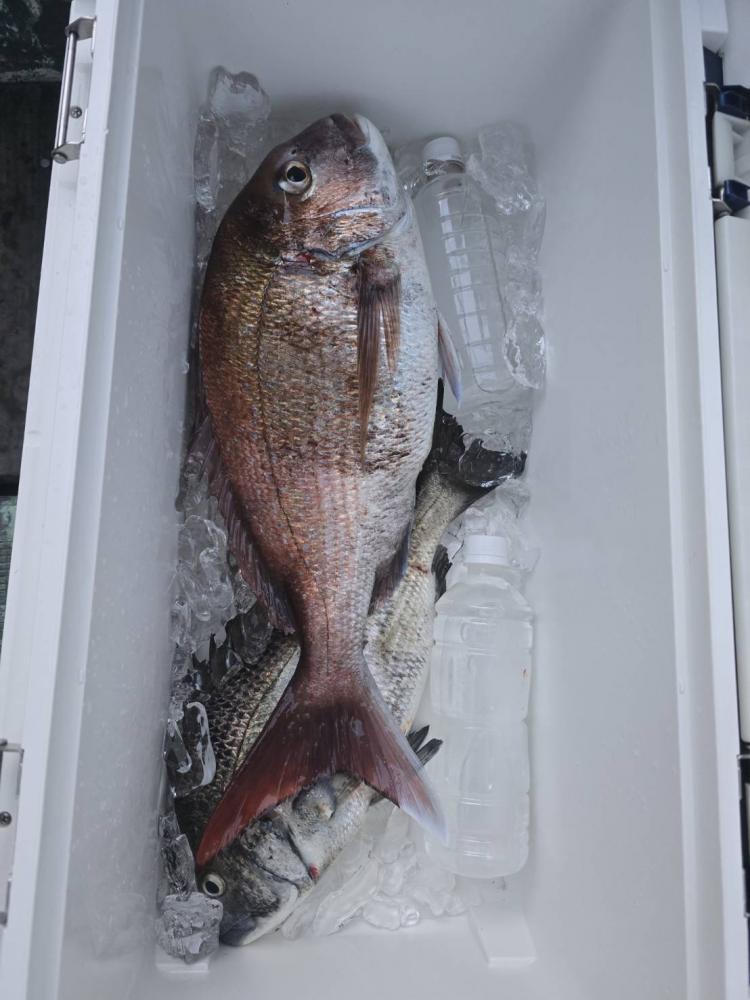 大雨と寒さに耐えながら頑張りましたが、マダイは0.8~1.8kgが0~2匹。