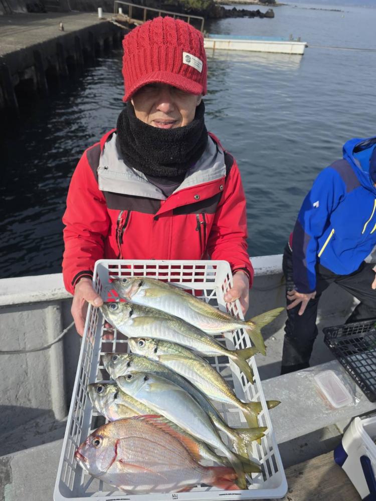 今朝はお客さま1組だったのでアジ中心に狙い、ポツポツ当たりお土産十分できました。