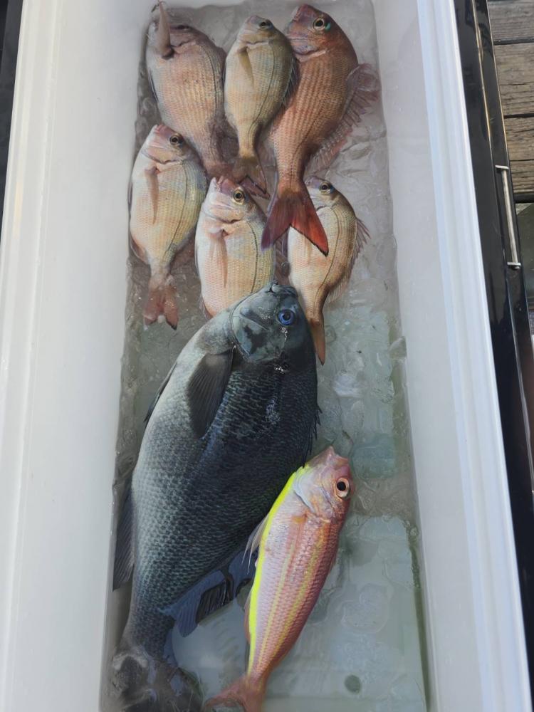 潮動かず当たりもなく良型オオモンハタのみ。