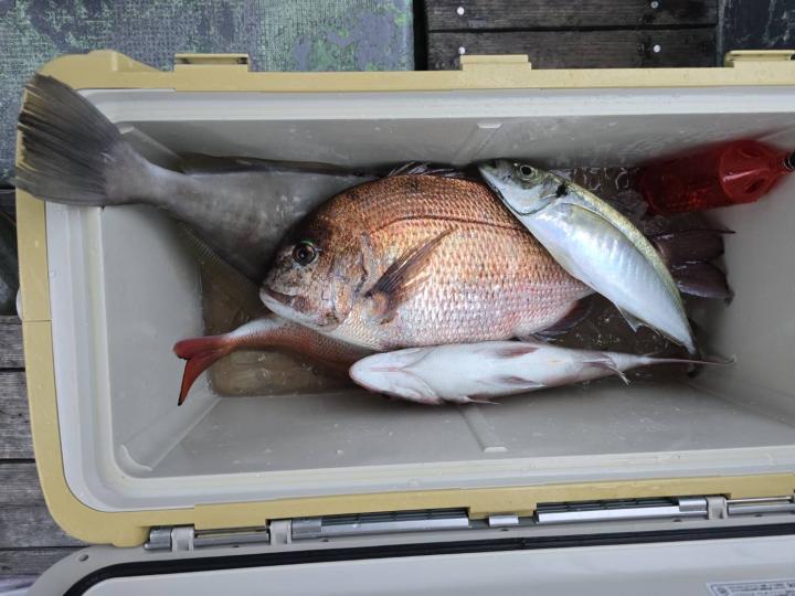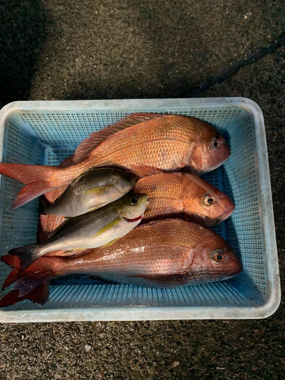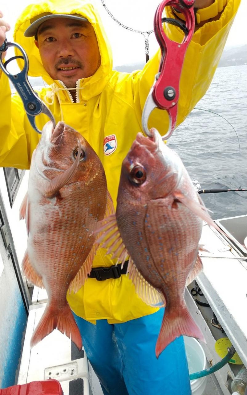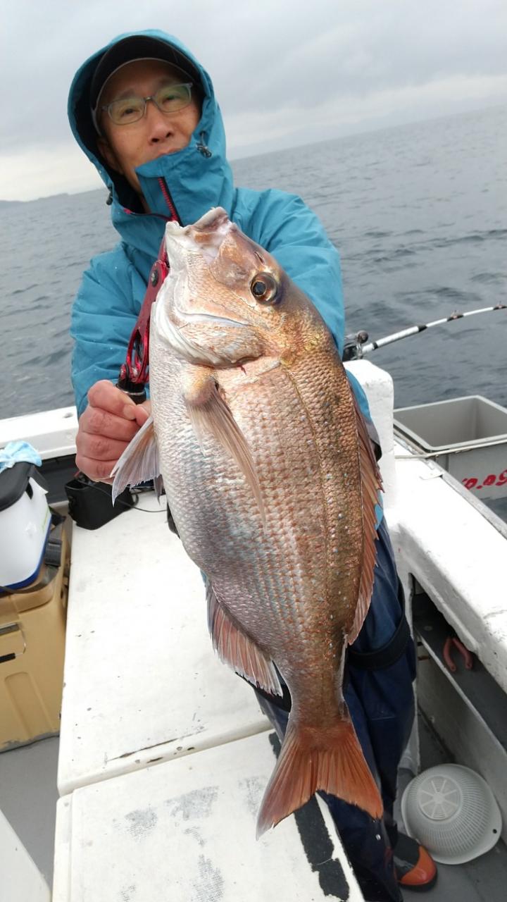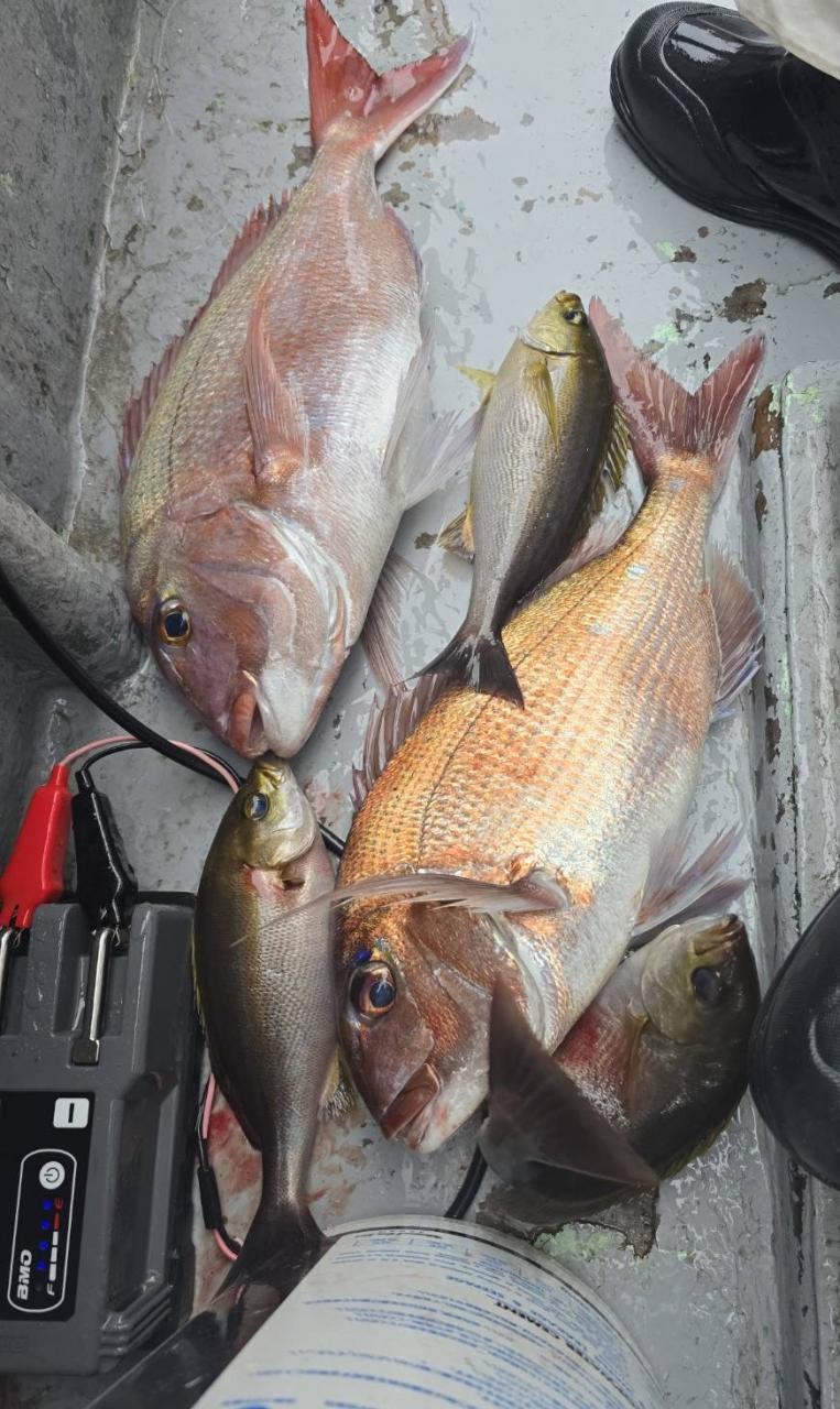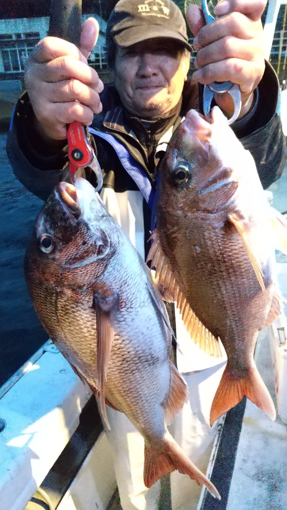 反応良く、マダイ、イサキよく当たりましたが、右舷と左舷で釣果偏りました。