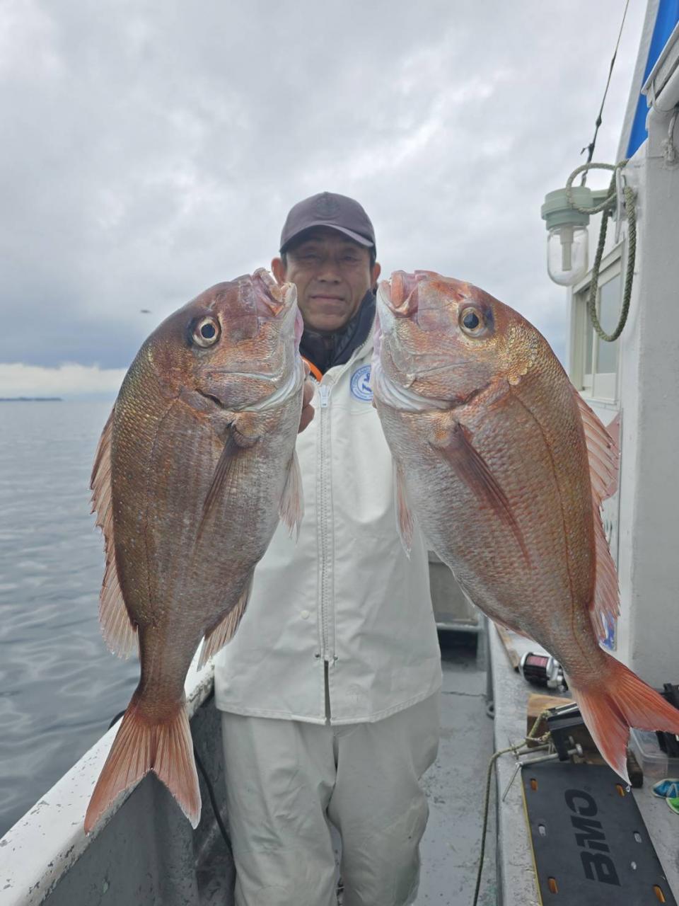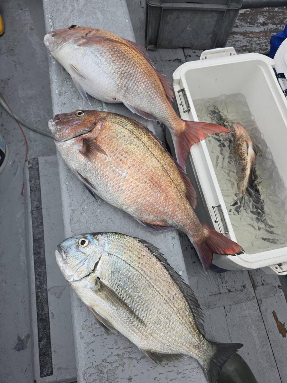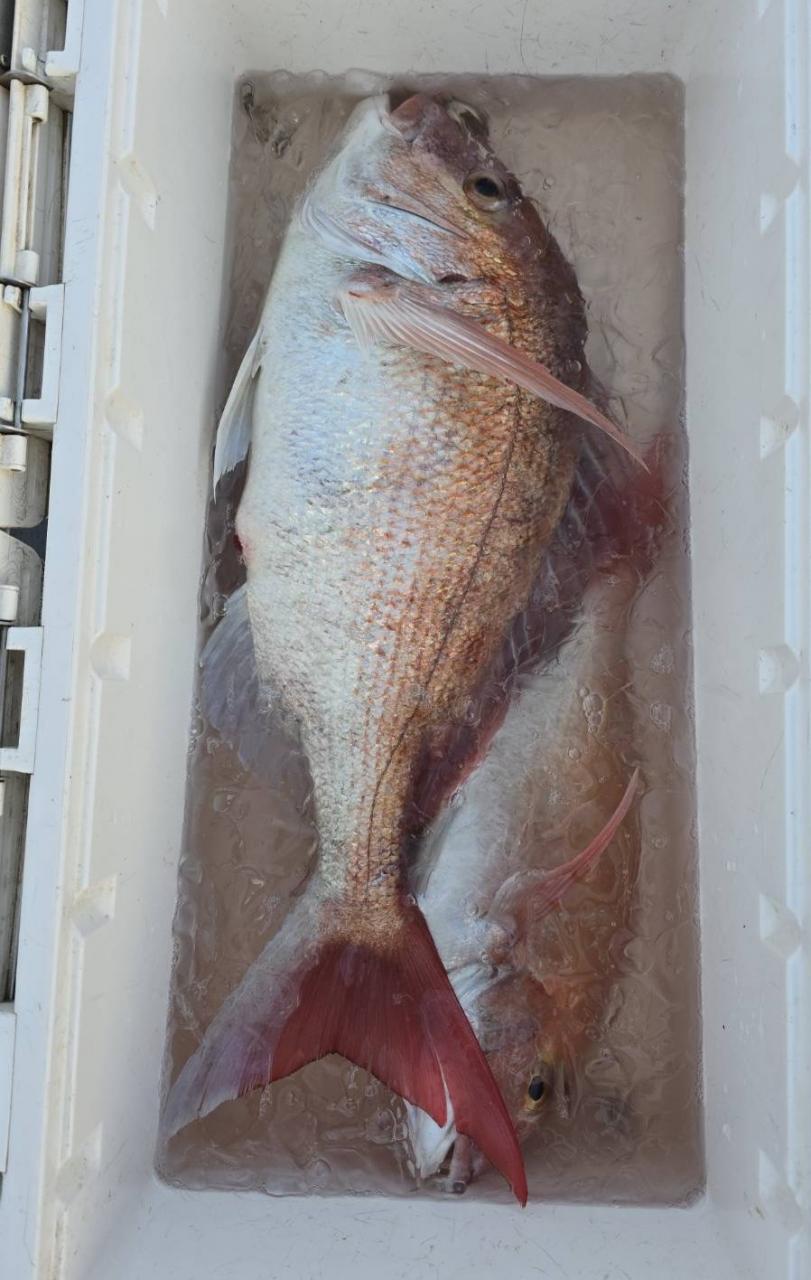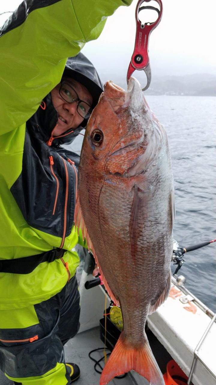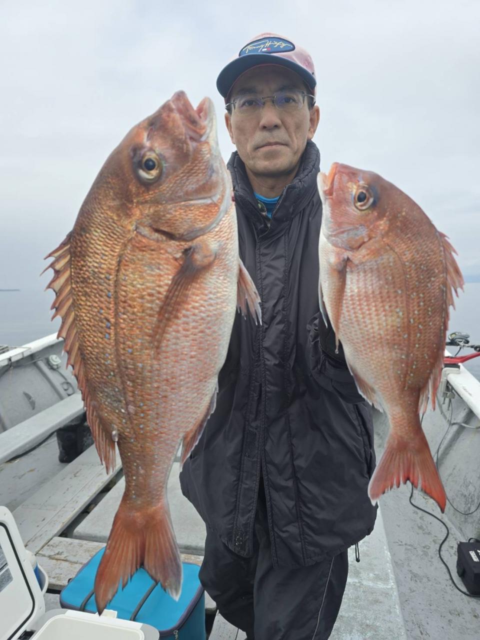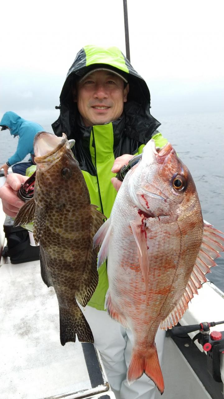 反応良く、マダイ、イサキよく当たりましたが、右舷と左舷で釣果偏りました。