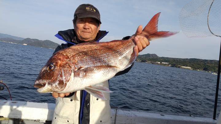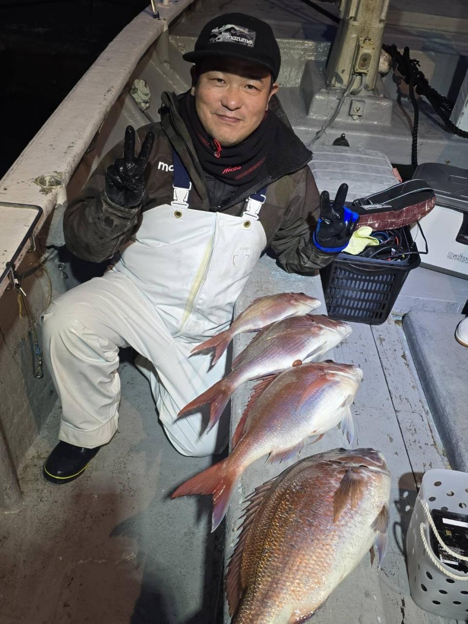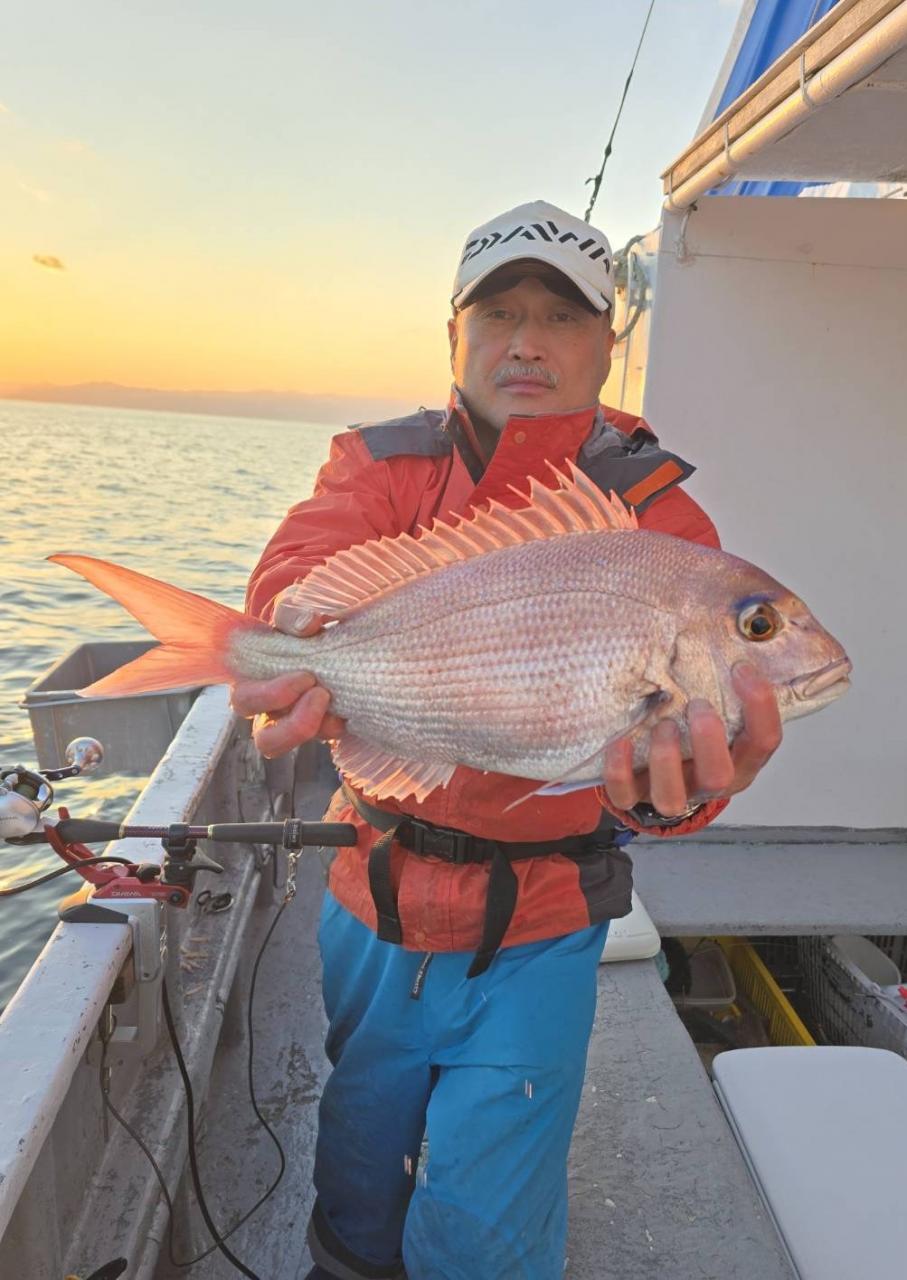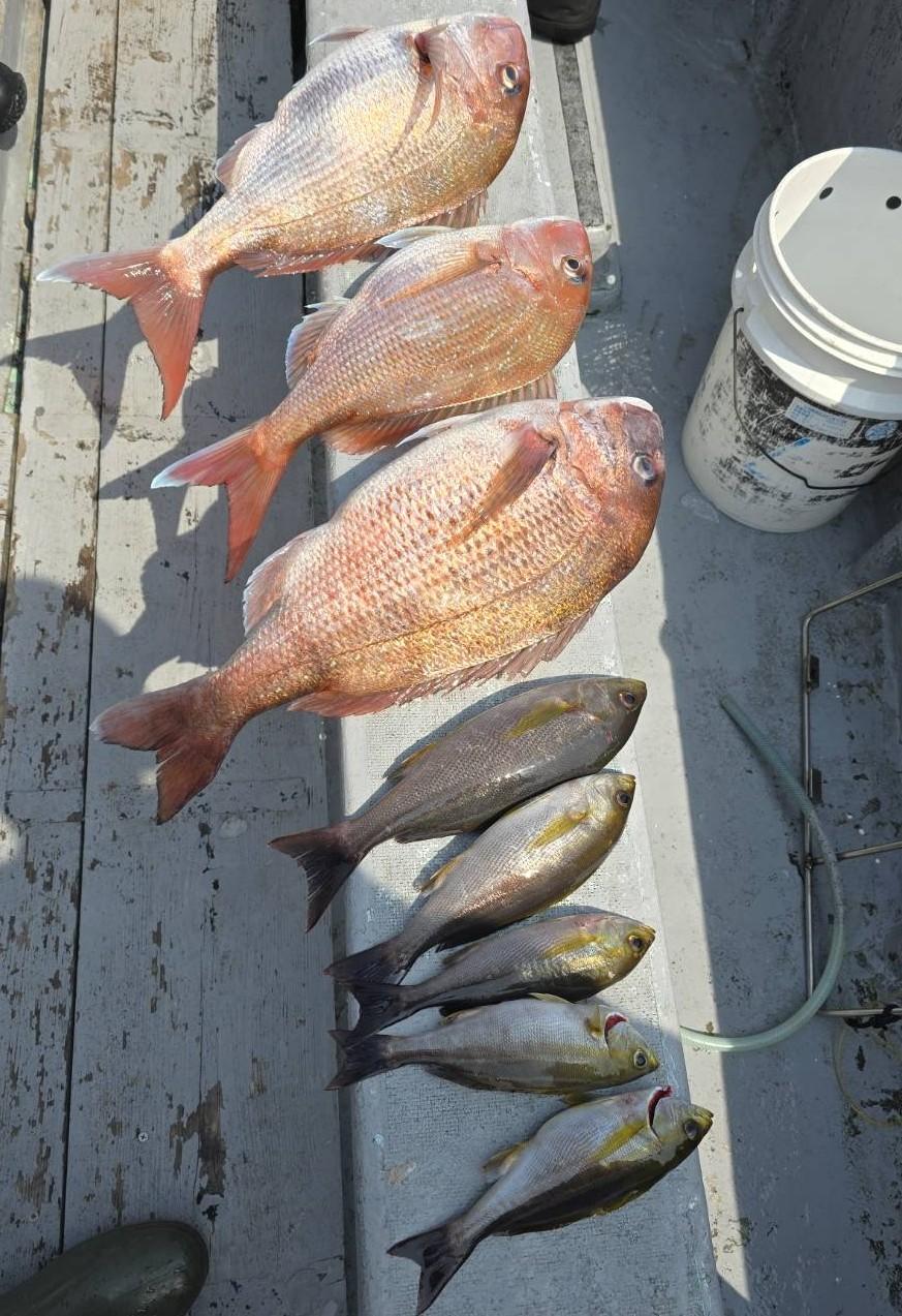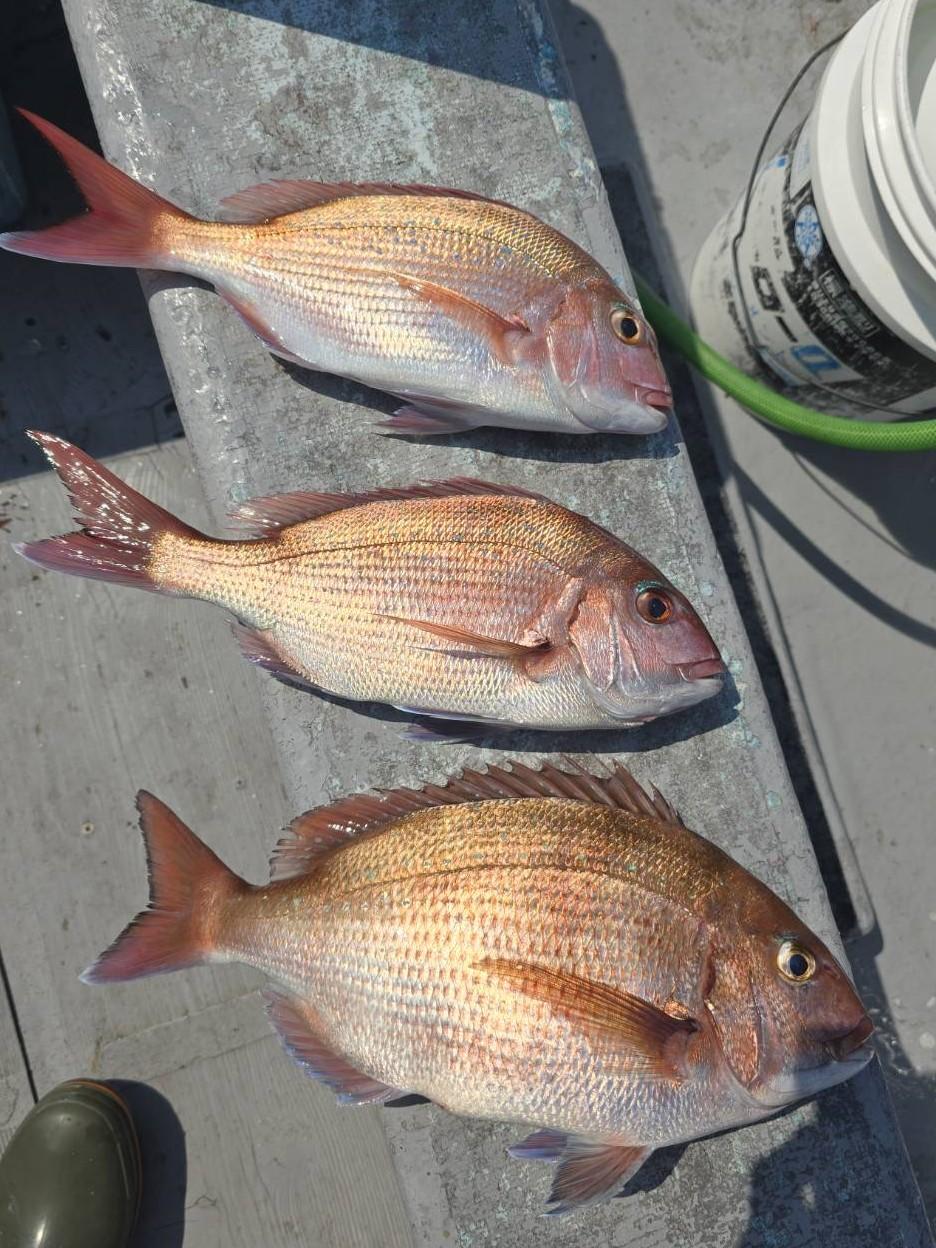 反応良く、マダイ、イサキよく当たりましたが、右舷と左舷で釣果偏りました。