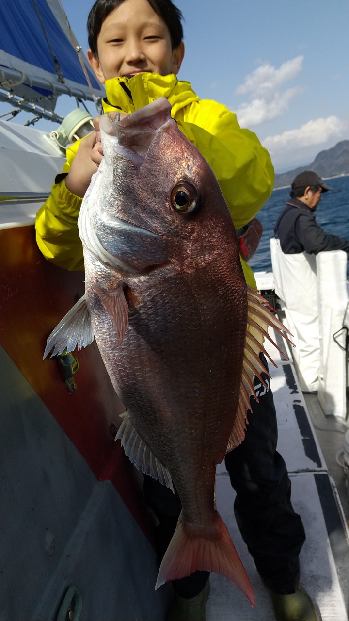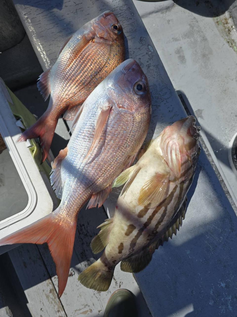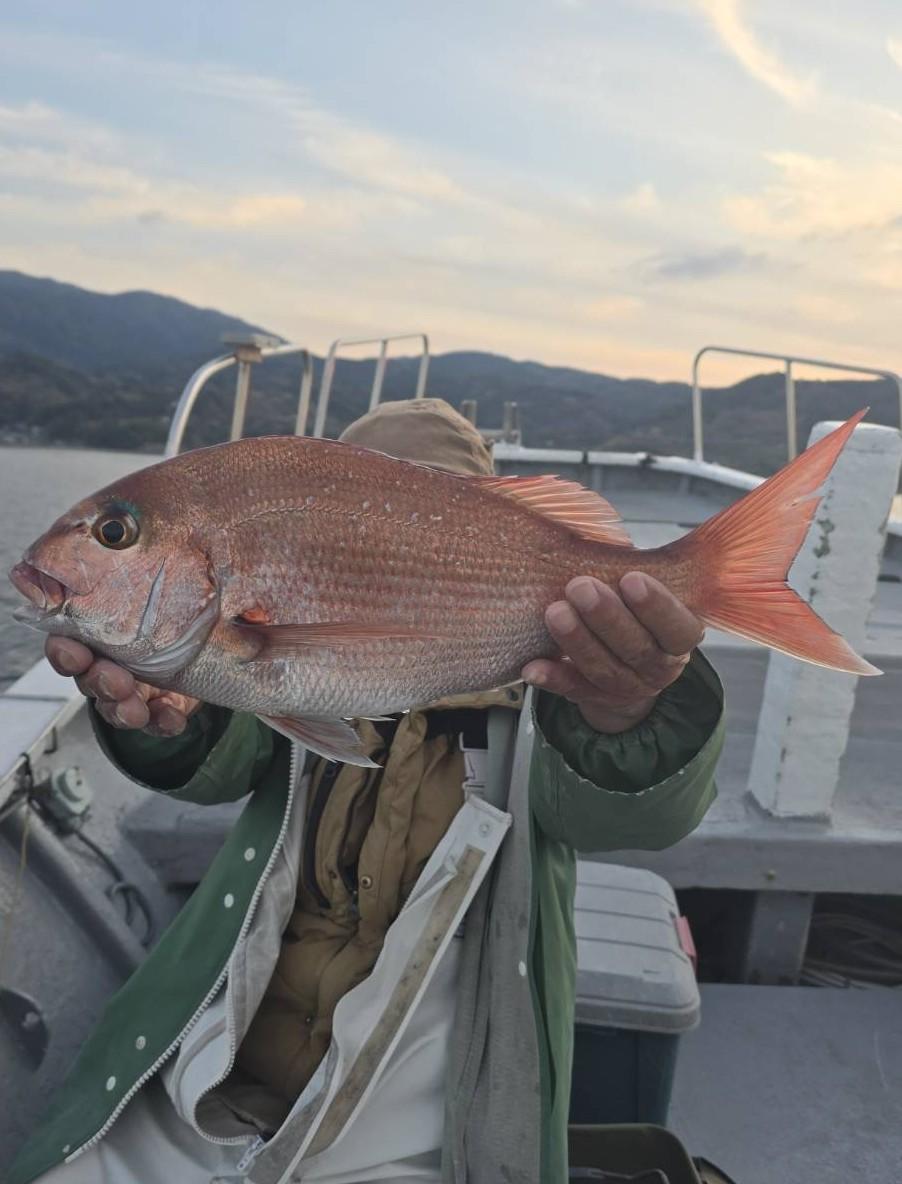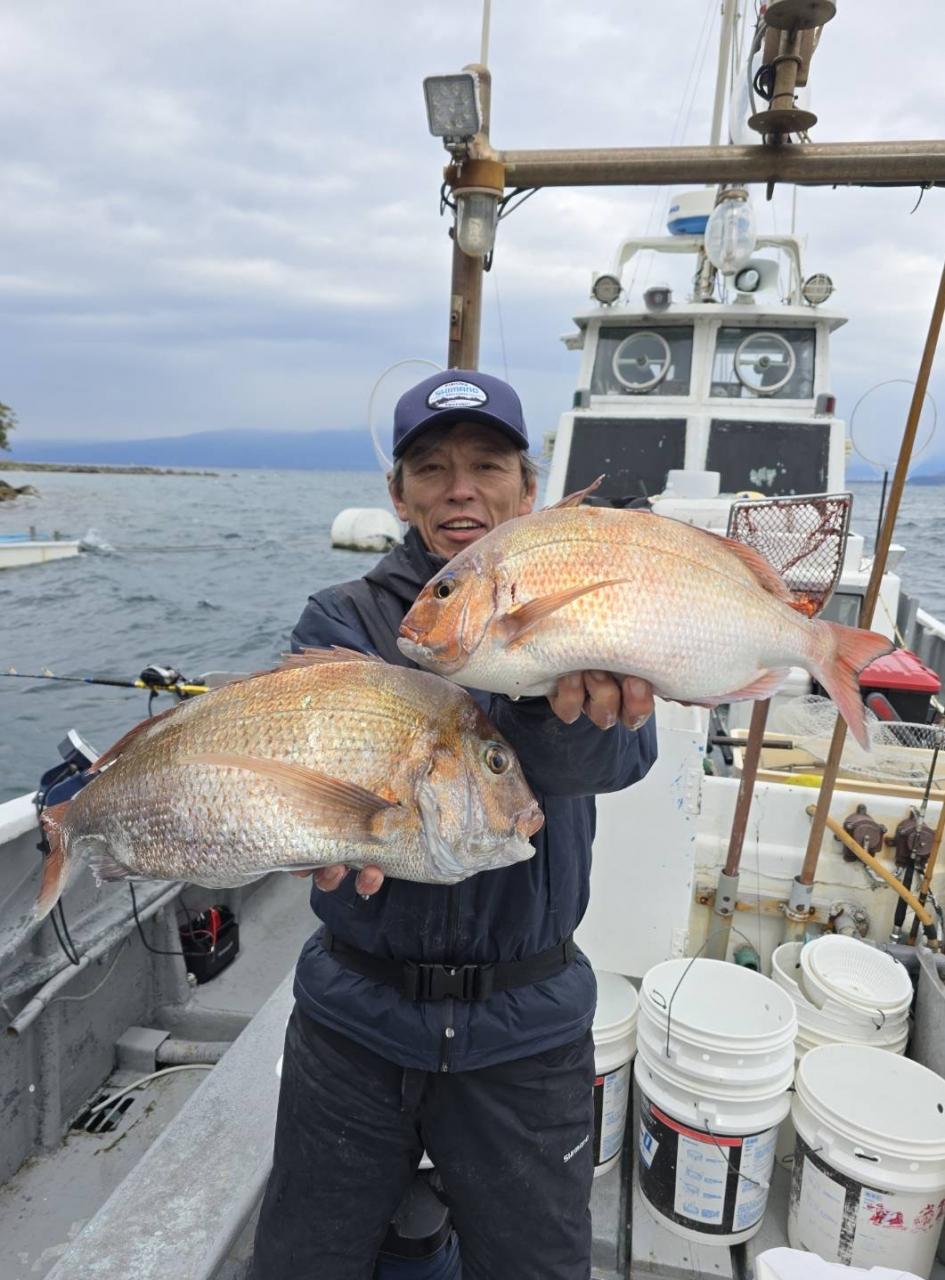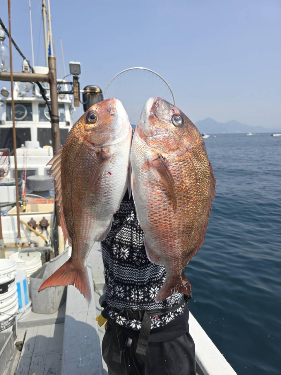 反応良く、マダイ、イサキよく当たりましたが、右舷と左舷で釣果偏りました。