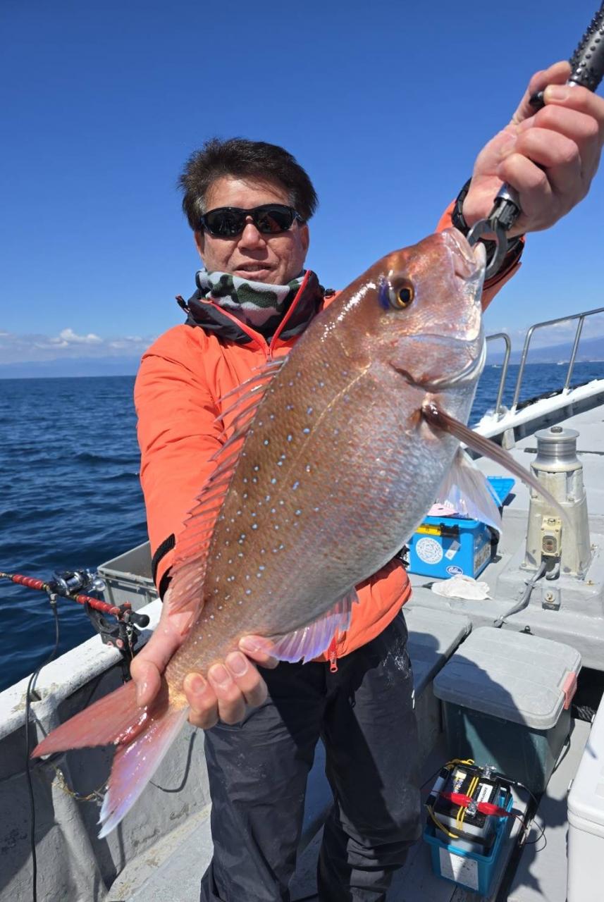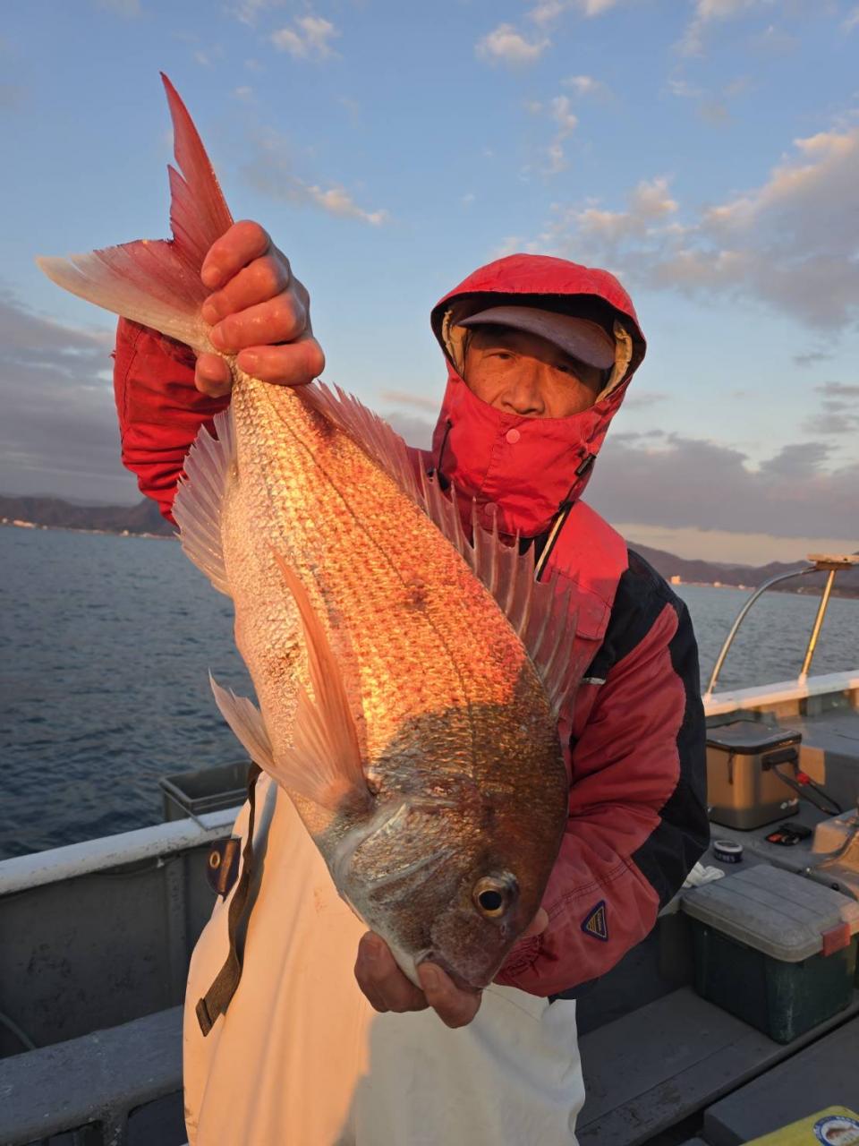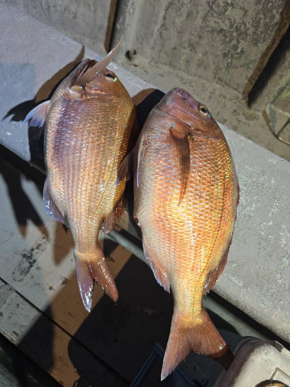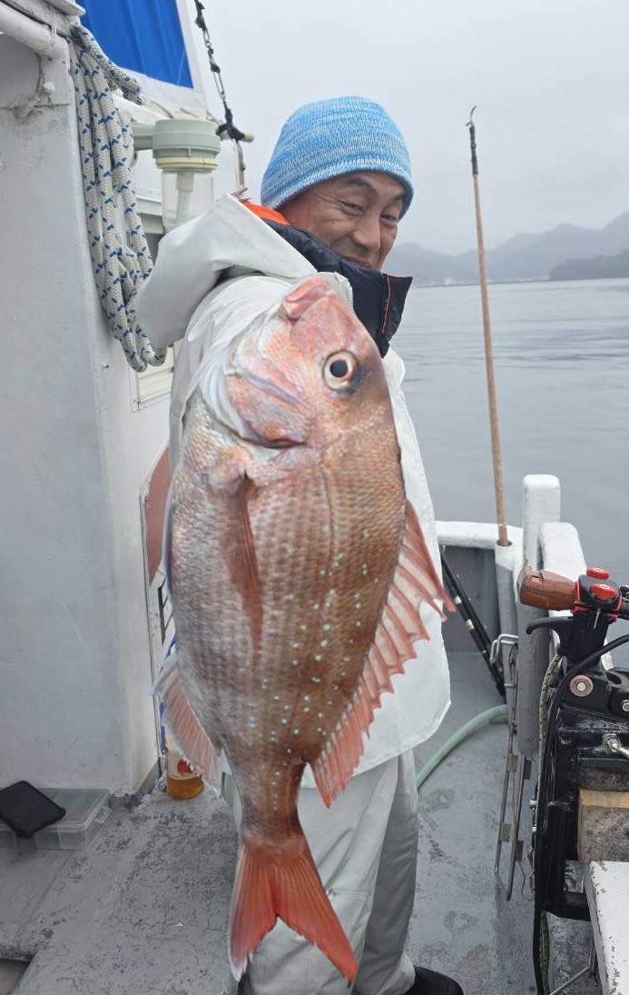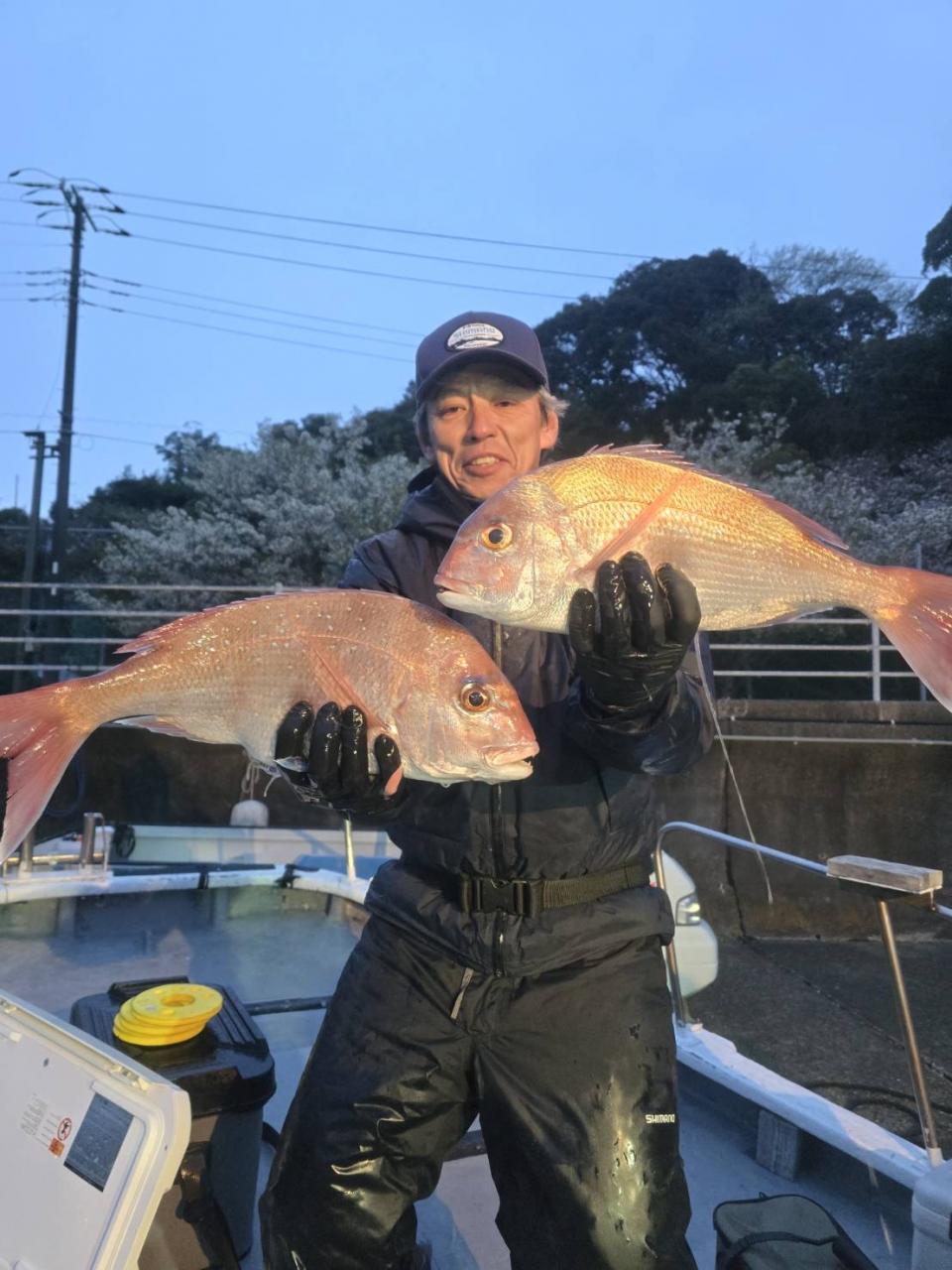 反応良く、マダイ、イサキよく当たりましたが、右舷と左舷で釣果偏りました。