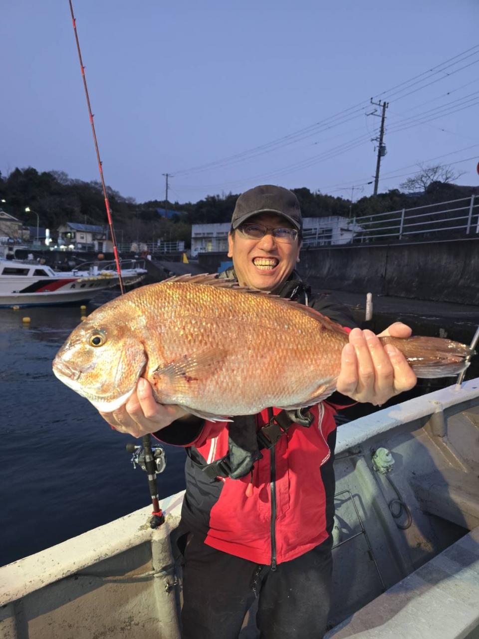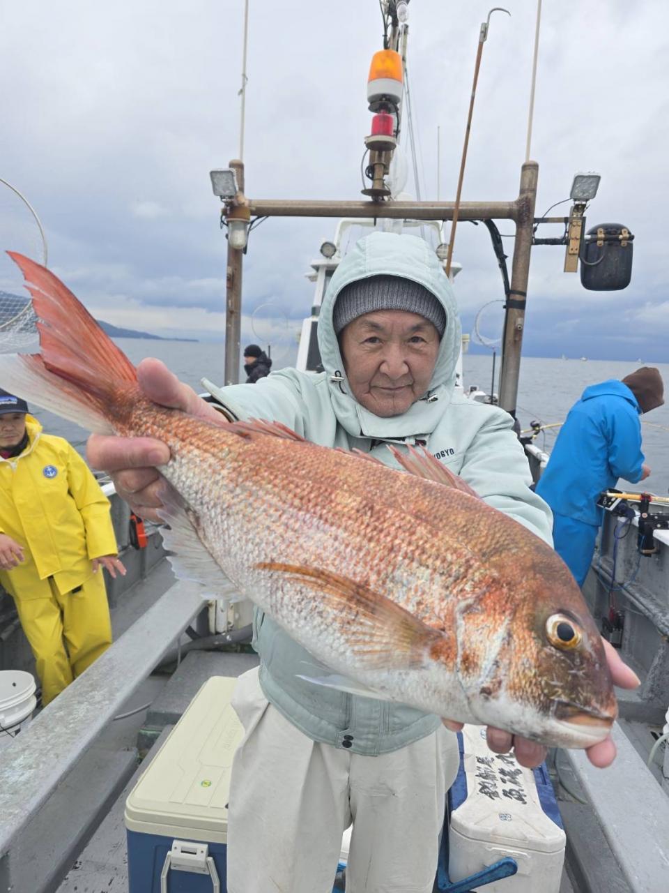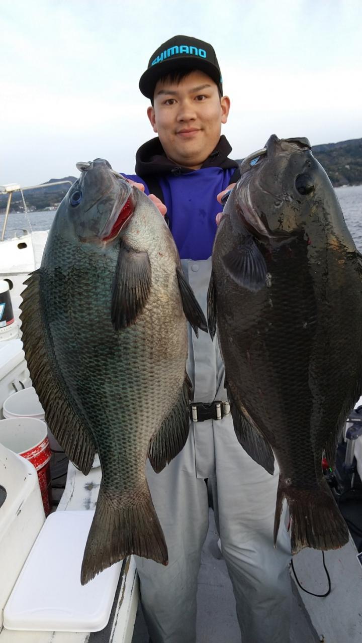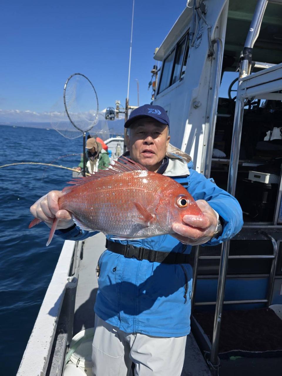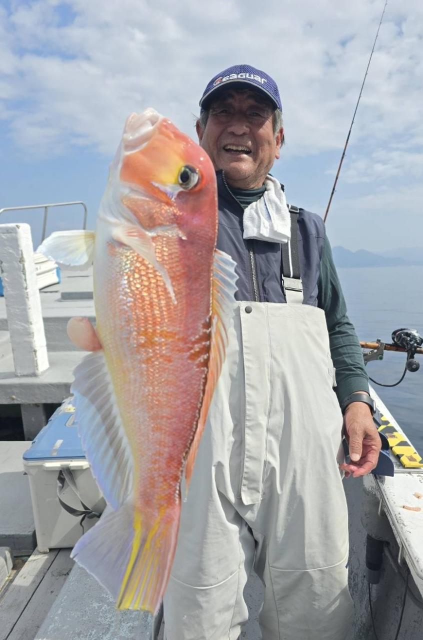 反応良く、マダイ、イサキよく当たりましたが、右舷と左舷で釣果偏りました。