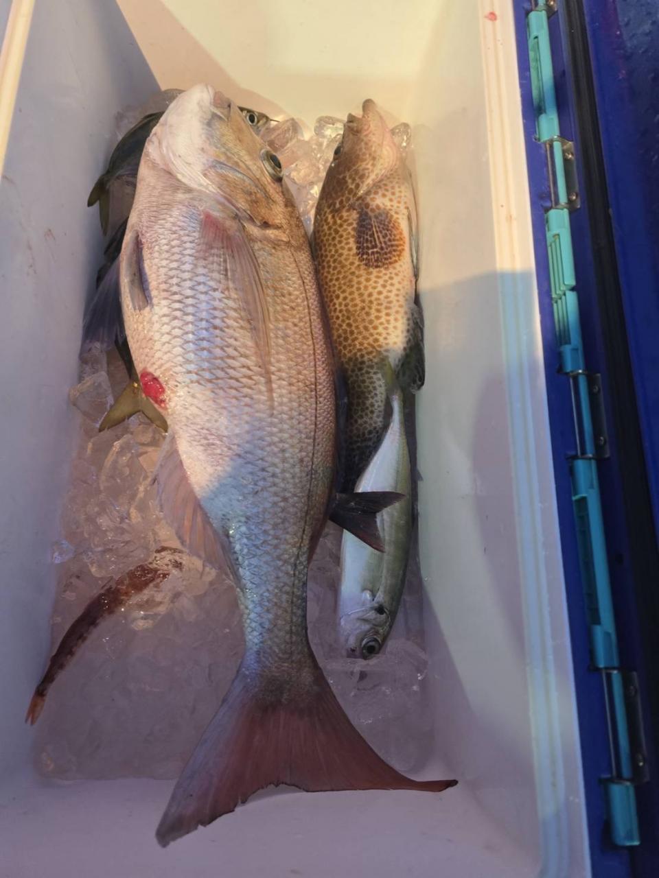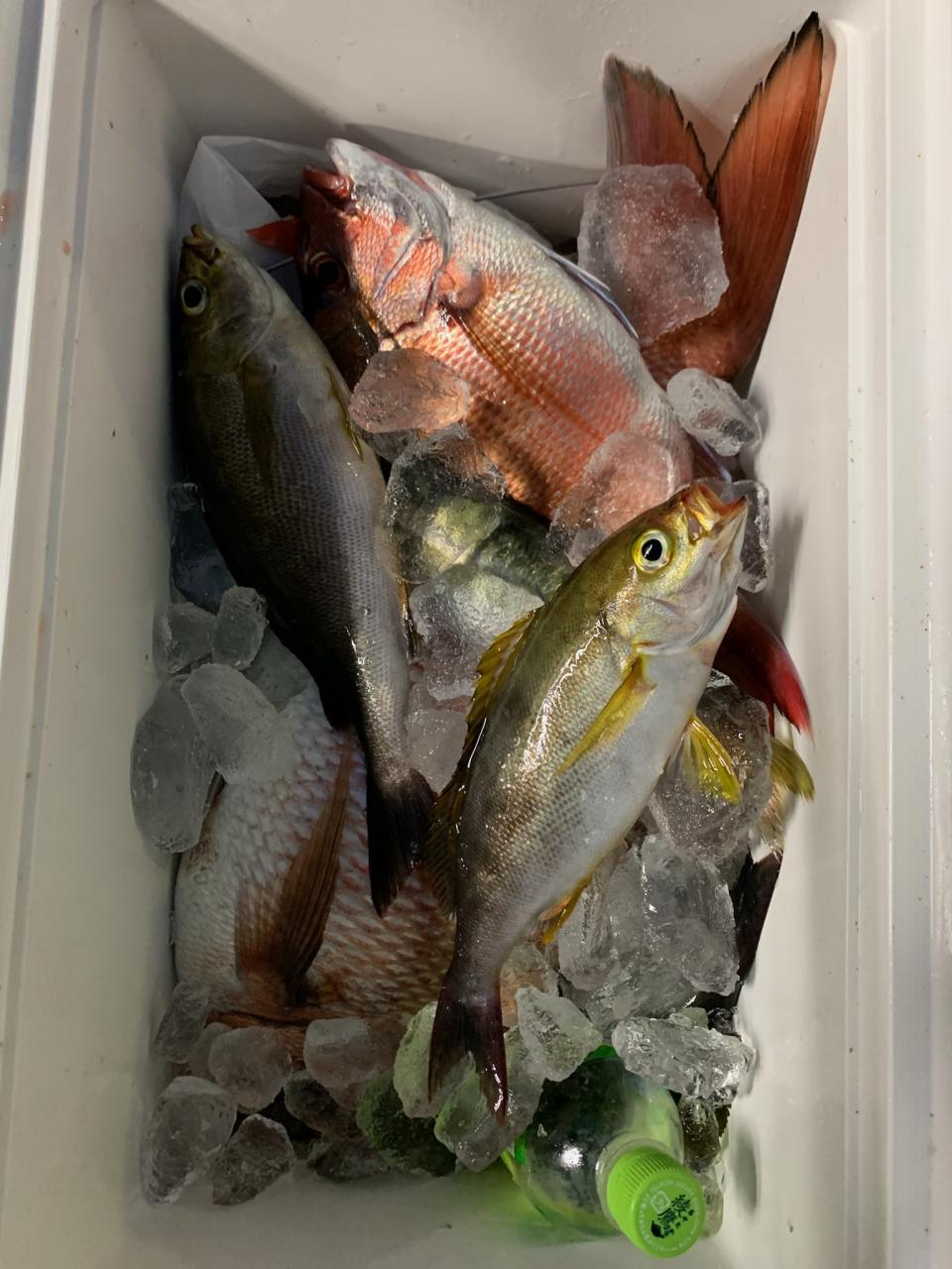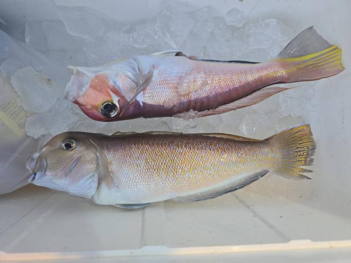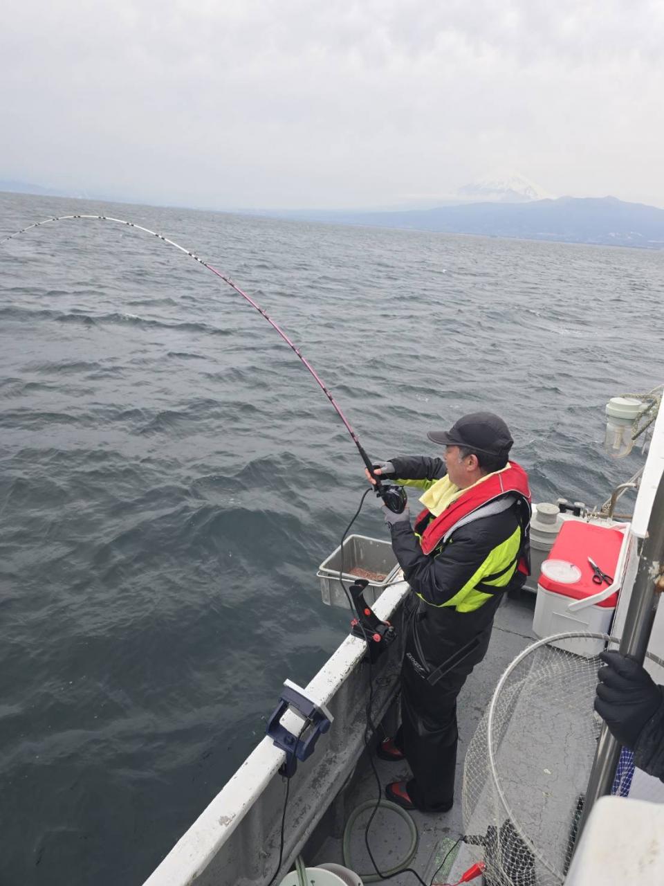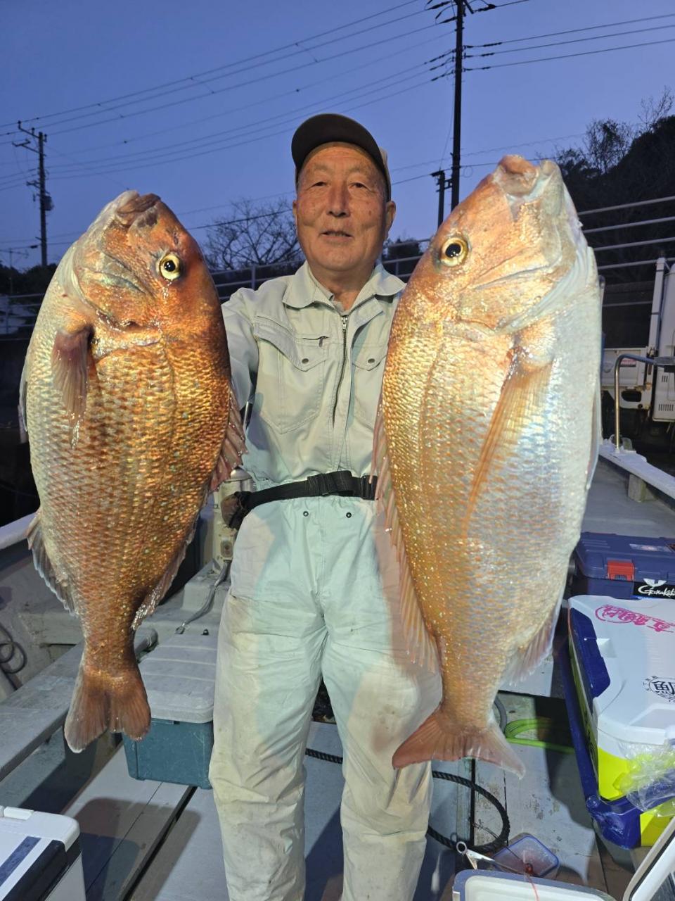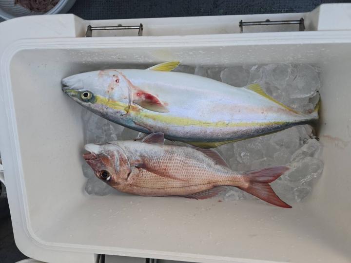 反応良く、マダイ、イサキよく当たりましたが、右舷と左舷で釣果偏りました。