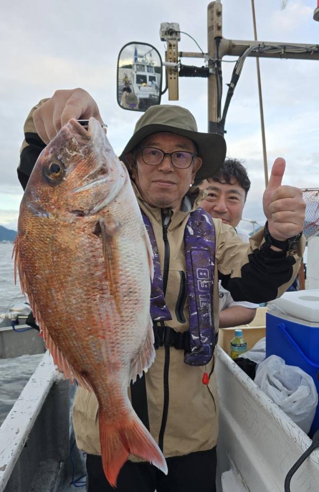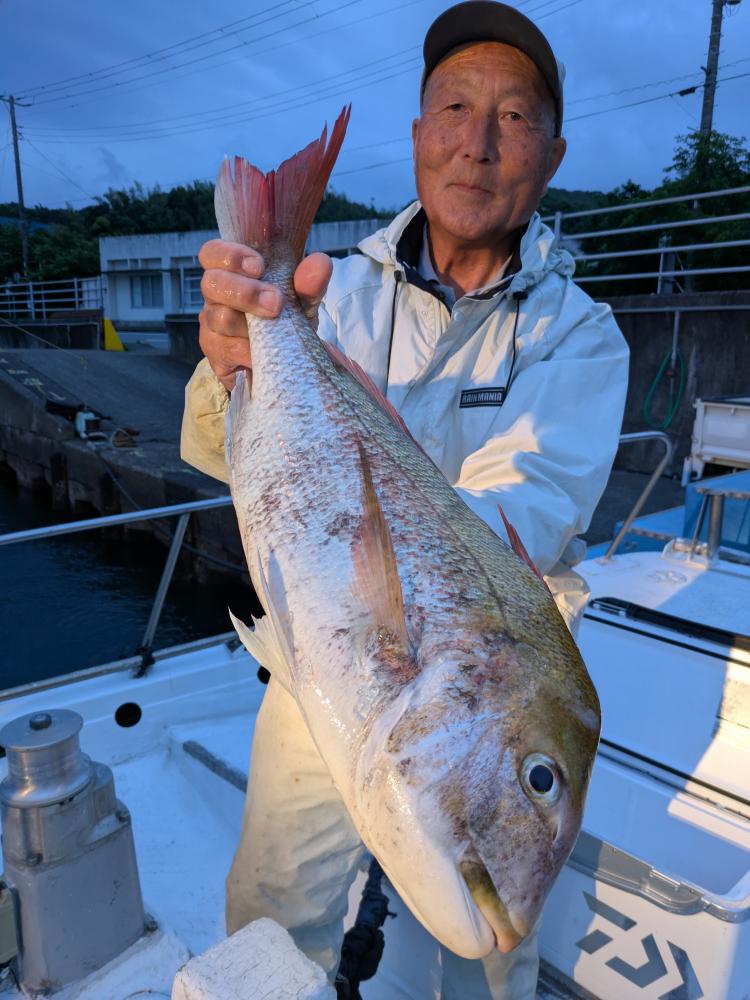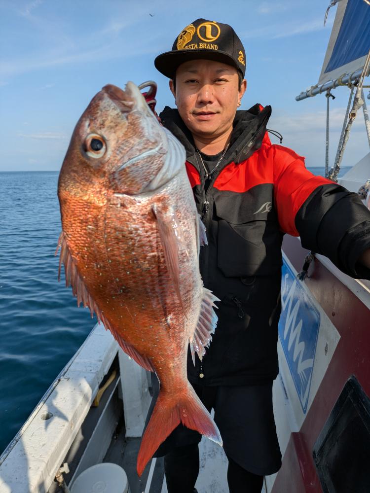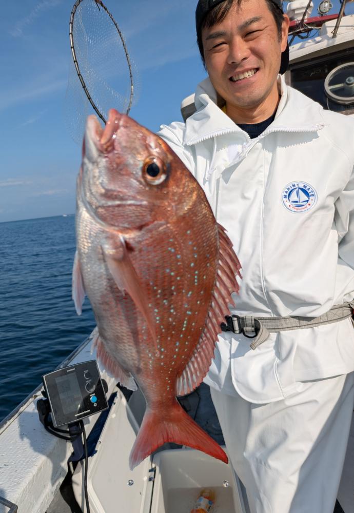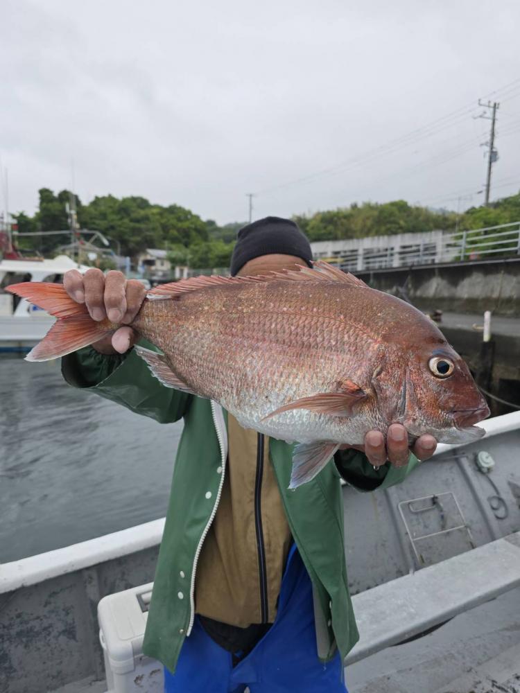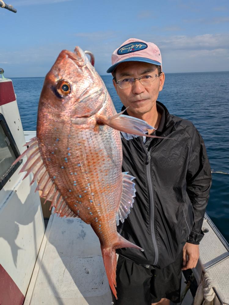 夕方イサキ・アジが釣れ、お土産確保する中に良型マダイが釣れました。