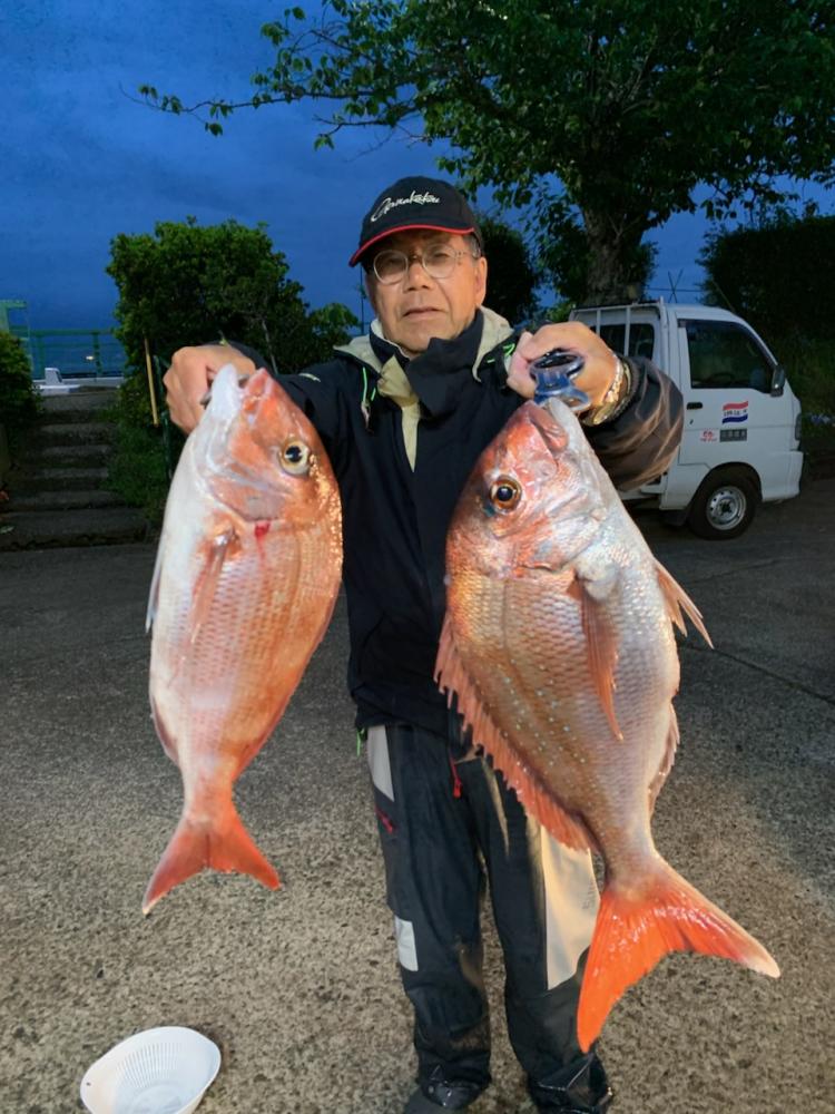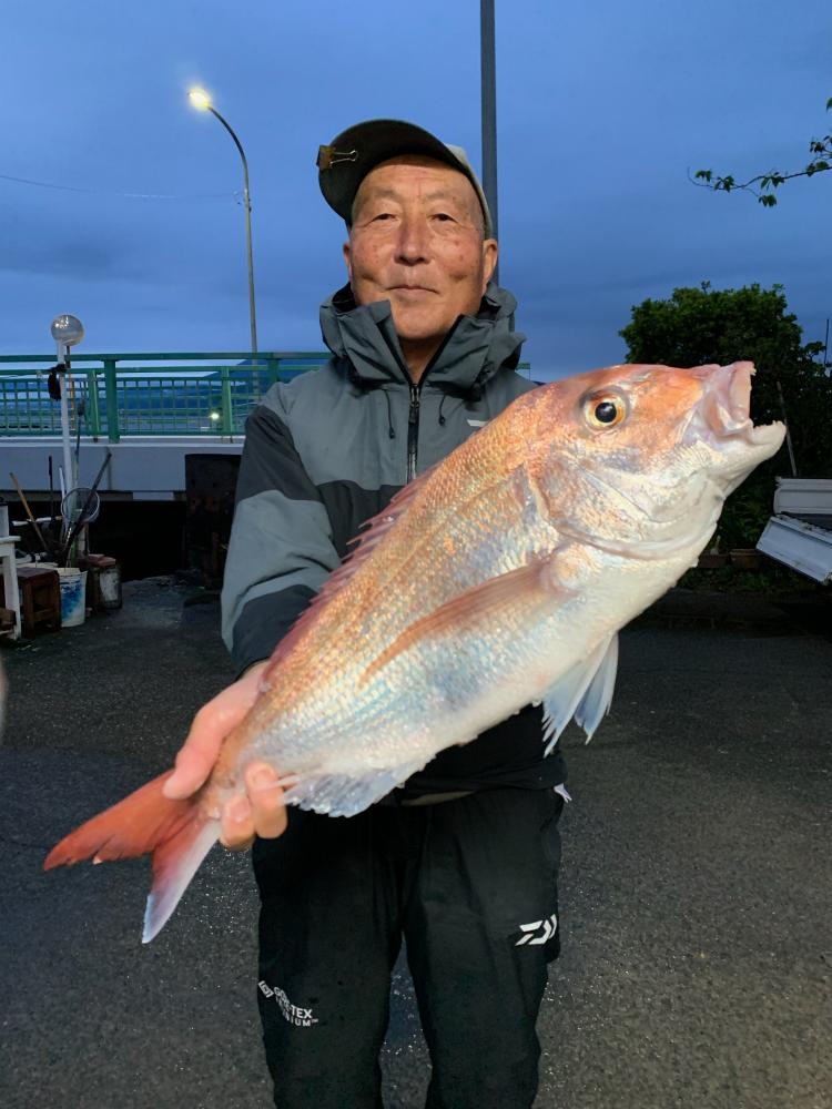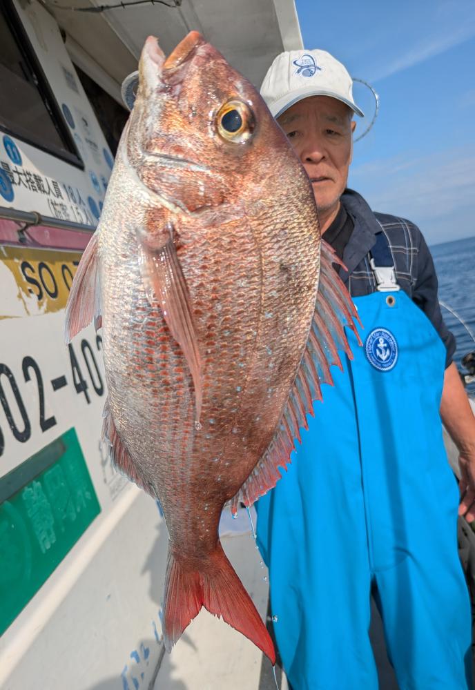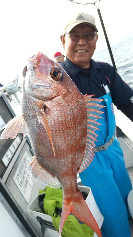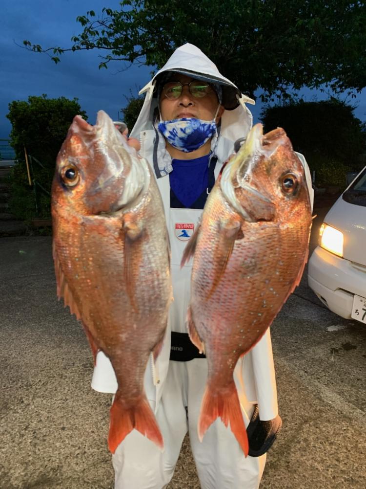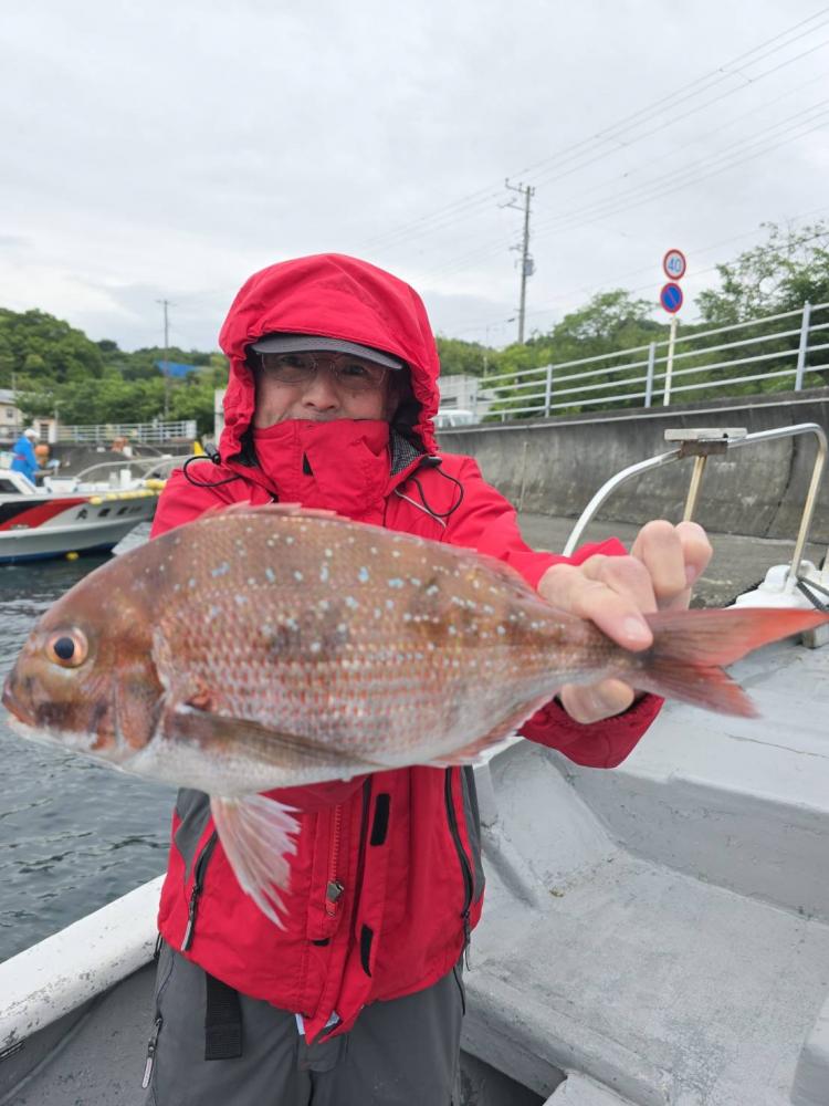 夕方イサキ・アジが釣れ、お土産確保する中に良型マダイが釣れました。