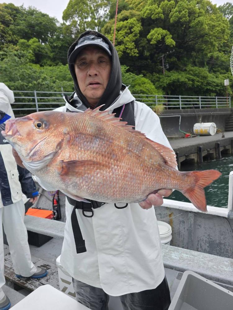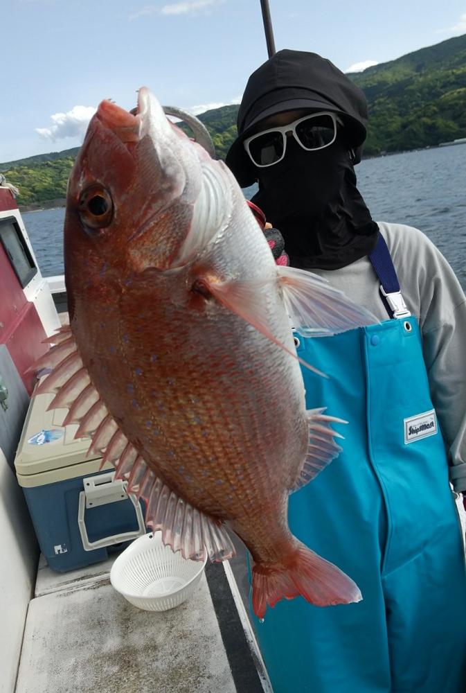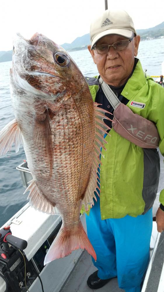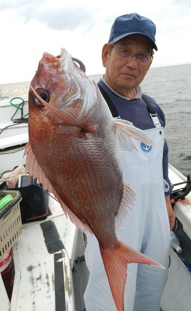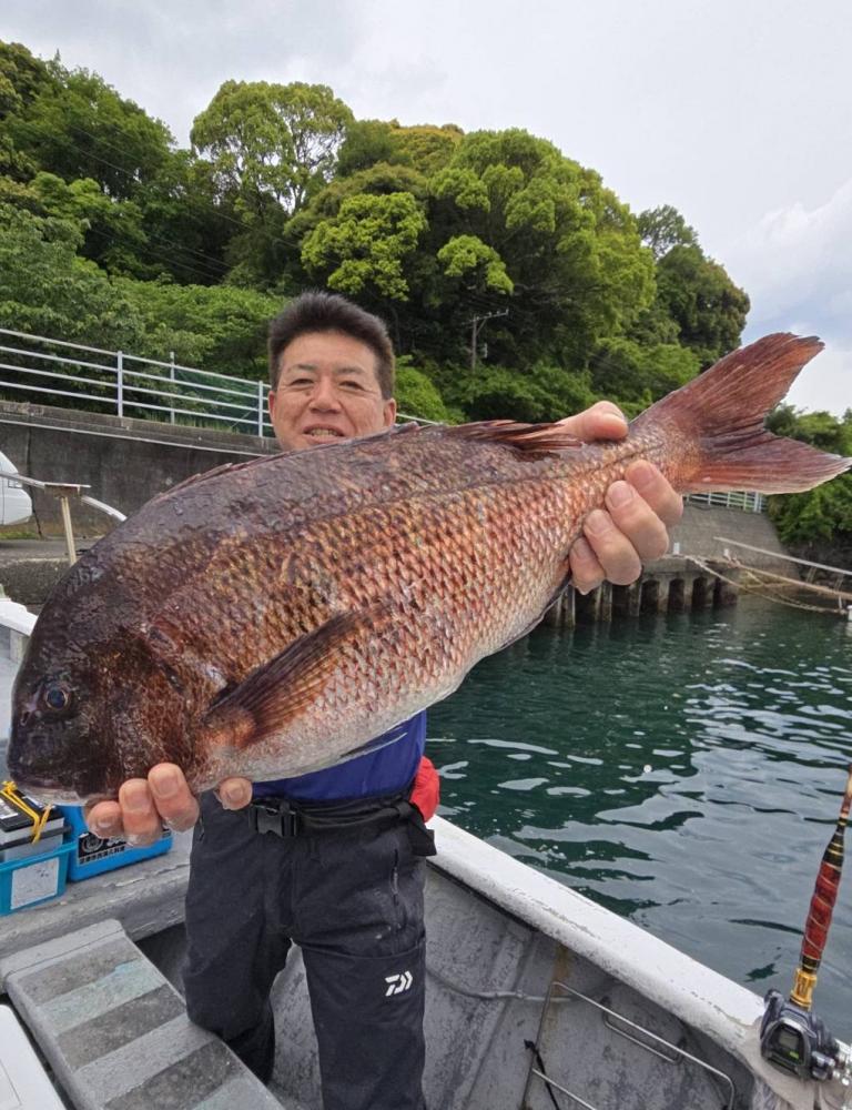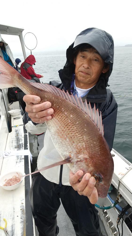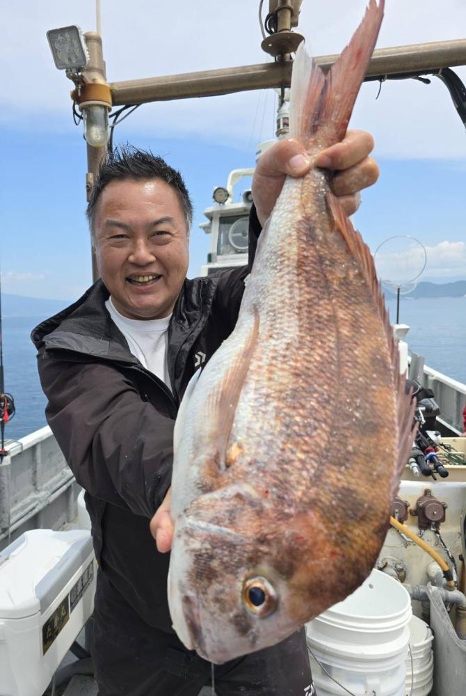 夕方イサキ・アジが釣れ、お土産確保する中に良型マダイが釣れました。