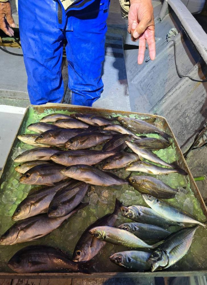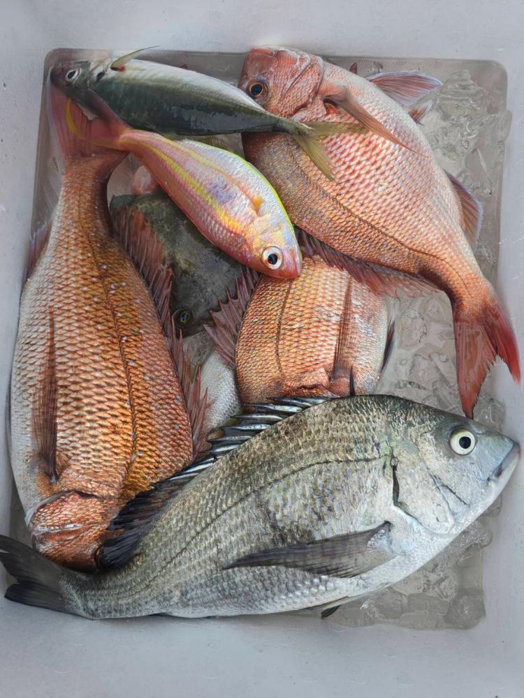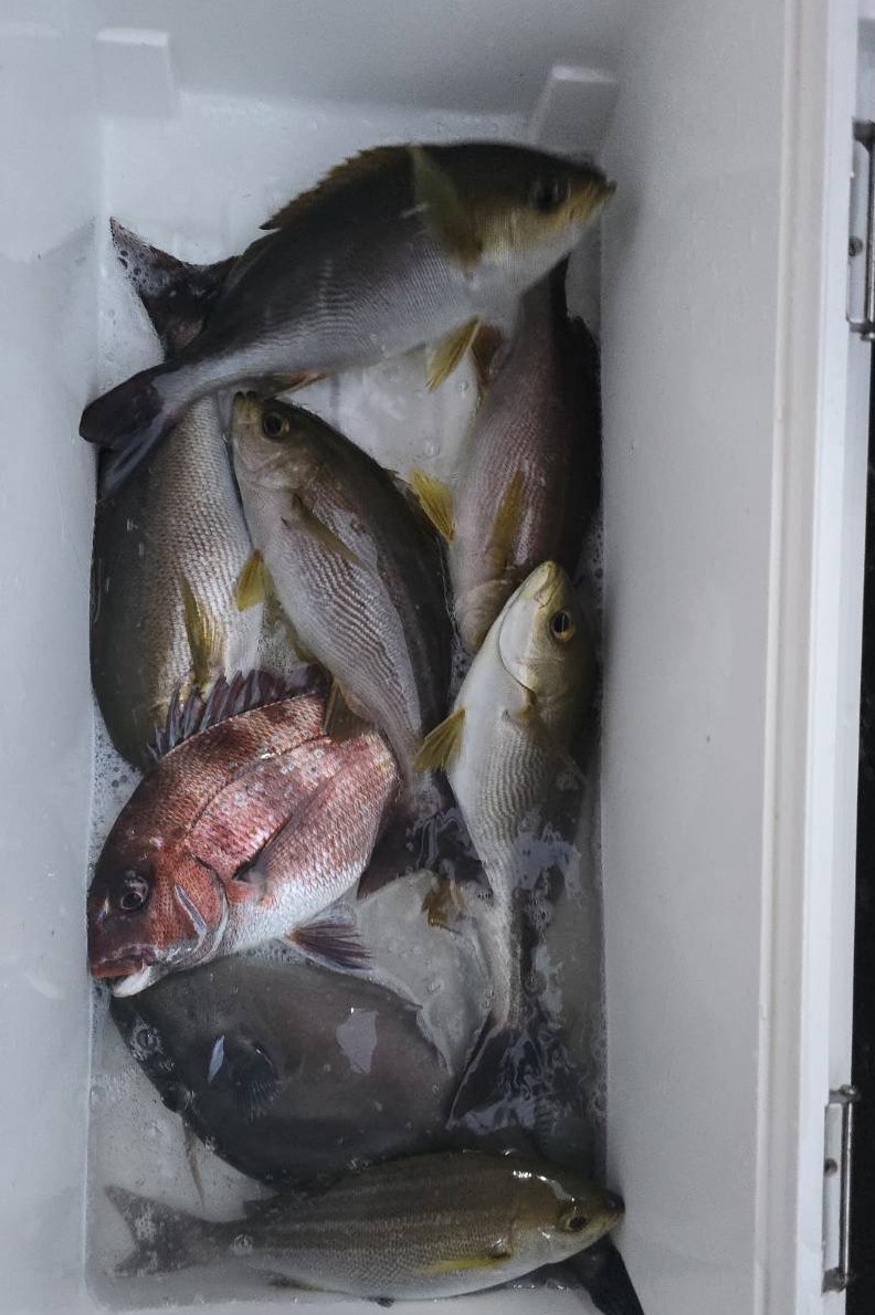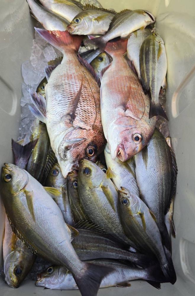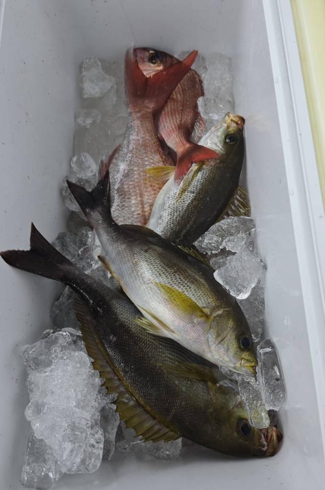イサキは頭で25匹、マダイは1kg1匹、イトヨリ・アマダイ