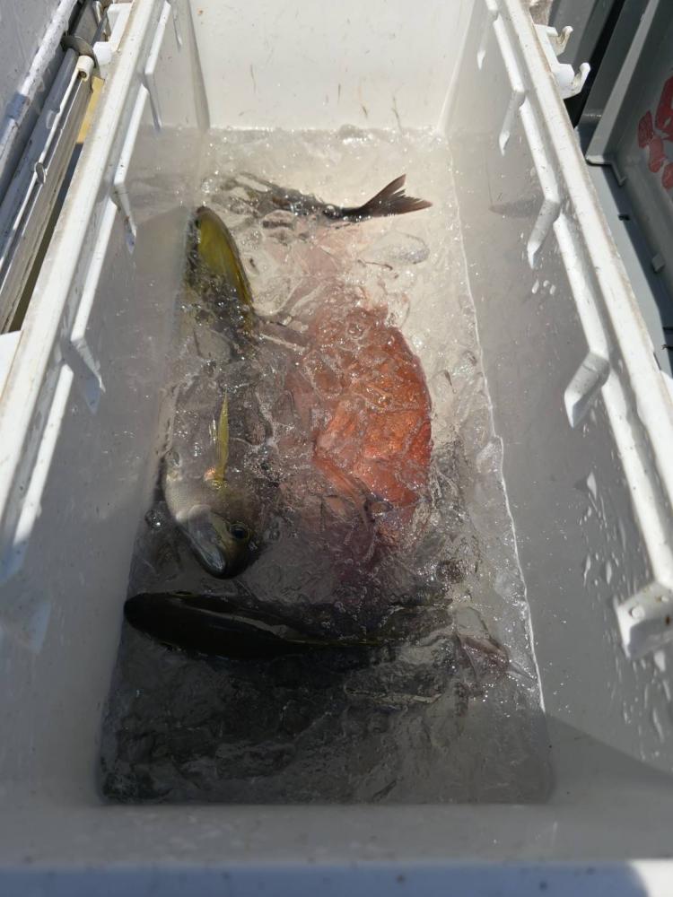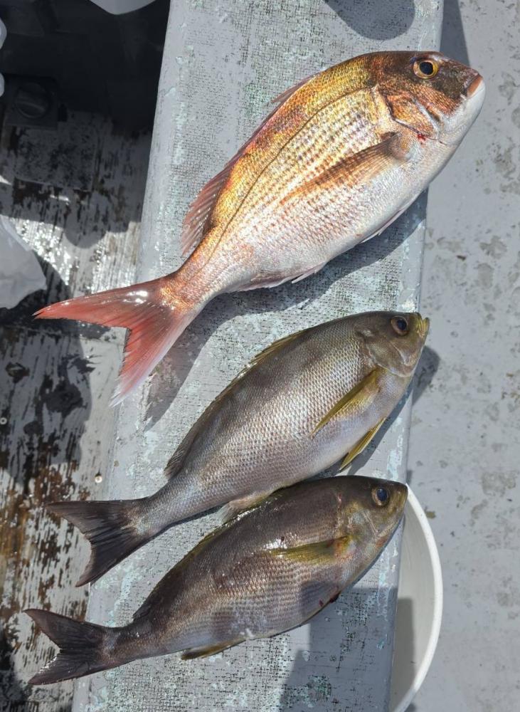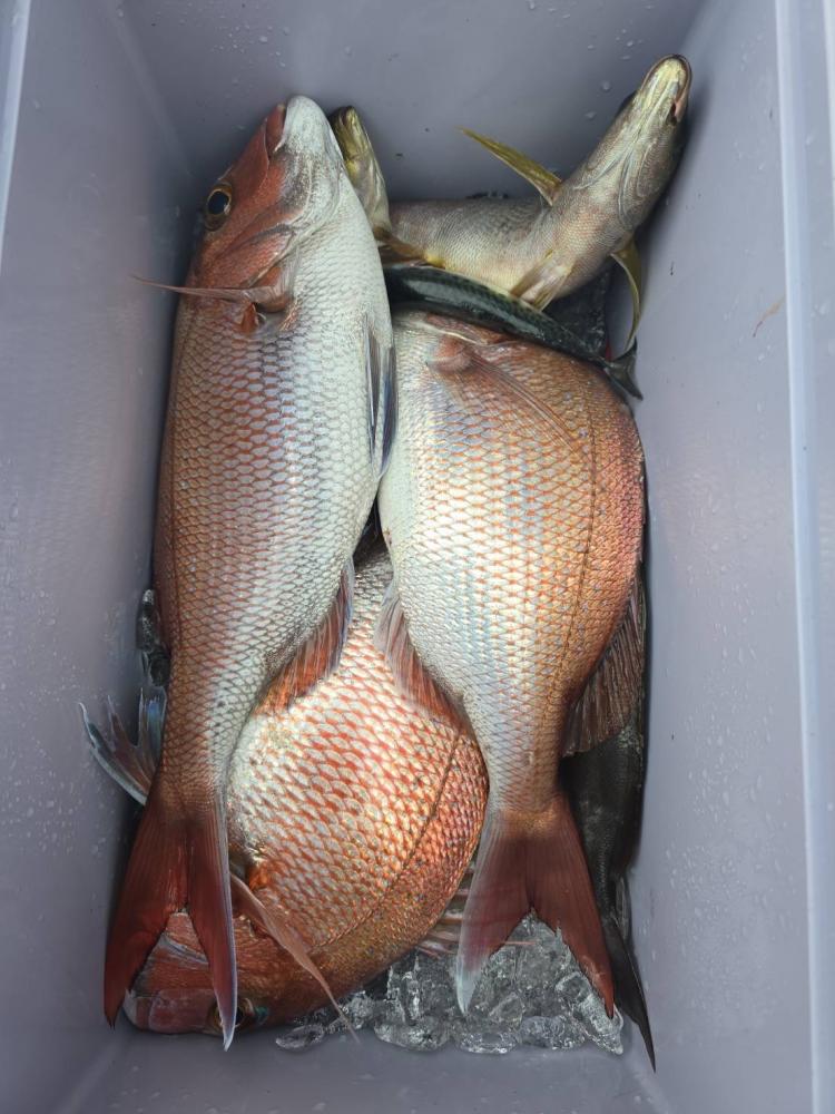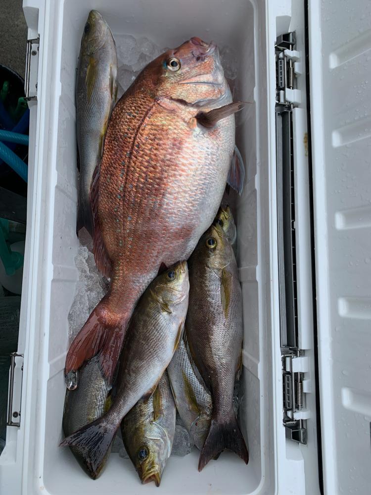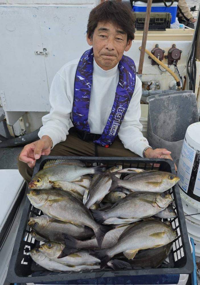 イサキは頭で25匹、マダイは1kg1匹、イトヨリ・アマダイ