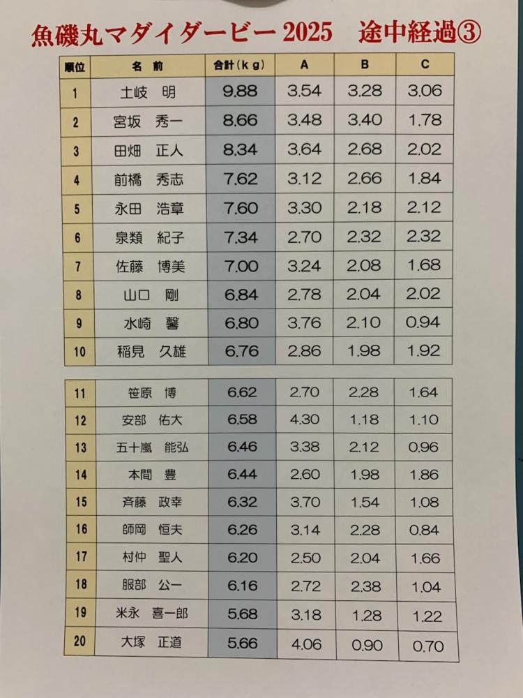 今日は一日風予報で釣り辛かったですが、マダイダービー最終日ともあり皆さん頑張っていただきました。